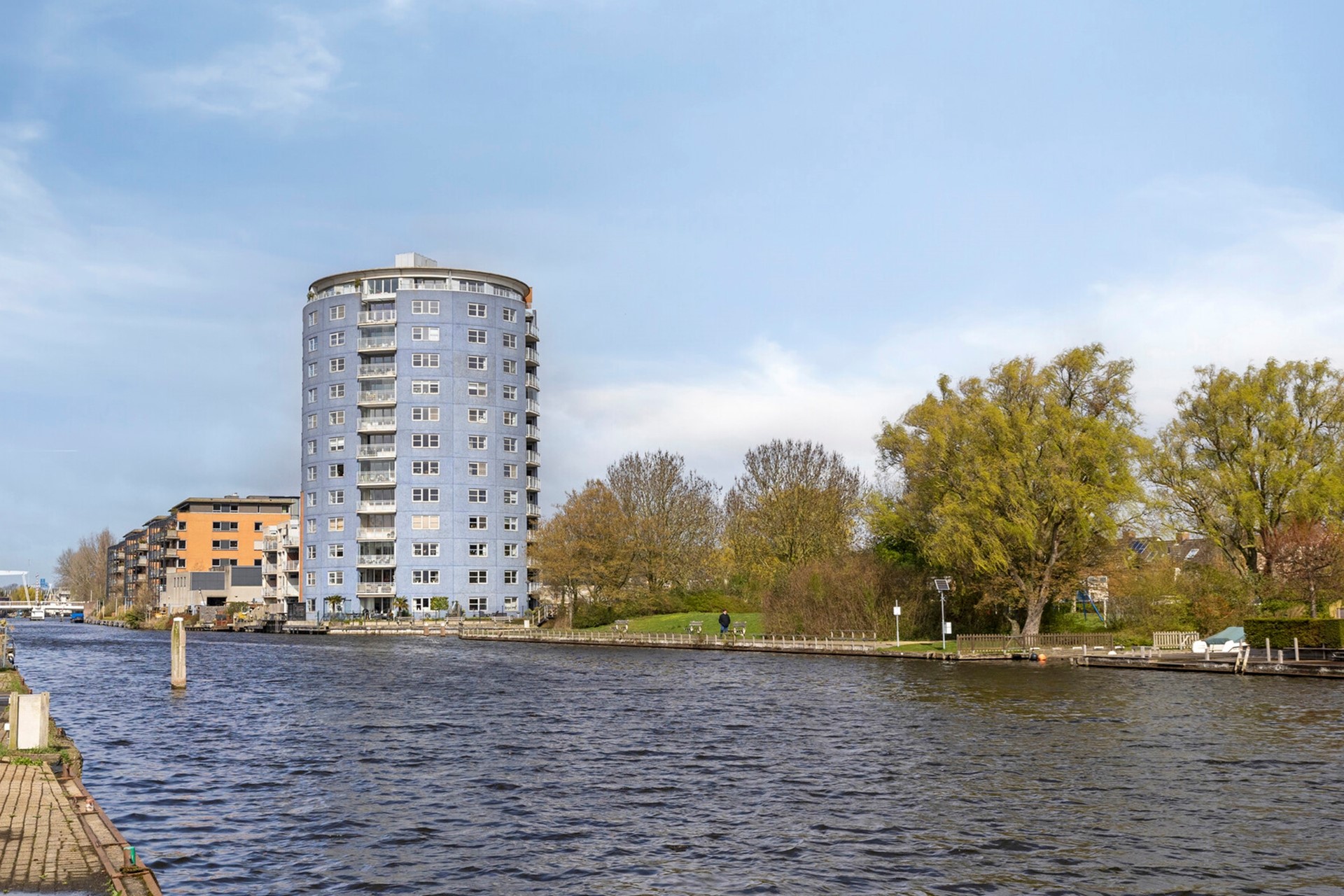 Entree woning. Gang met meterkast, toiletruimte en een vaste (berg)kast met stadsverwarmingsinstallatie en de opstelplaats voor de mechanische ventilatie-unit. De badkamer is voorzien van een wastafel, doucheruimte, radiator en de wasmachineaansluiting. Aan de achterzijde van het appartement bevindt zich de ruime ouderslaapkamer en een slaapkamer welke ook uitermate geschikt is als studie-, hobby- en/of kinderkamer. Vanuit beide slaapkamers geniet u van leuk vrij uitzicht over o.a. de Oude Rijn. De royale woonkamer verdient zeker uw aandacht! Deze lichte woonkamer is voorzien van een grote raampartij, videofooninstallatie en een gezellige open keuken. Er is genoeg ruimte voor een grote eettafel. Leuk wanneer u vrienden of familie hebt uitgenodigd voor een diner! De keuken beschikt o.a. over een keramische kookplaat, koel/vriescombinatie en een vaatwasser. Via een deur in de woonkamer heeft u toegang tot het fijne balkon gelegen op het oosten. Beeldt u eens in… Het is zomer. U komt thuis aan het einde van de dag. Even bijkomen en de dag doorspreken onder het genot van een gekoeld drankje met gedeeltelijk uitzicht op o.a. voorbijkomende (plezier)vaart. Onwerkelijk?