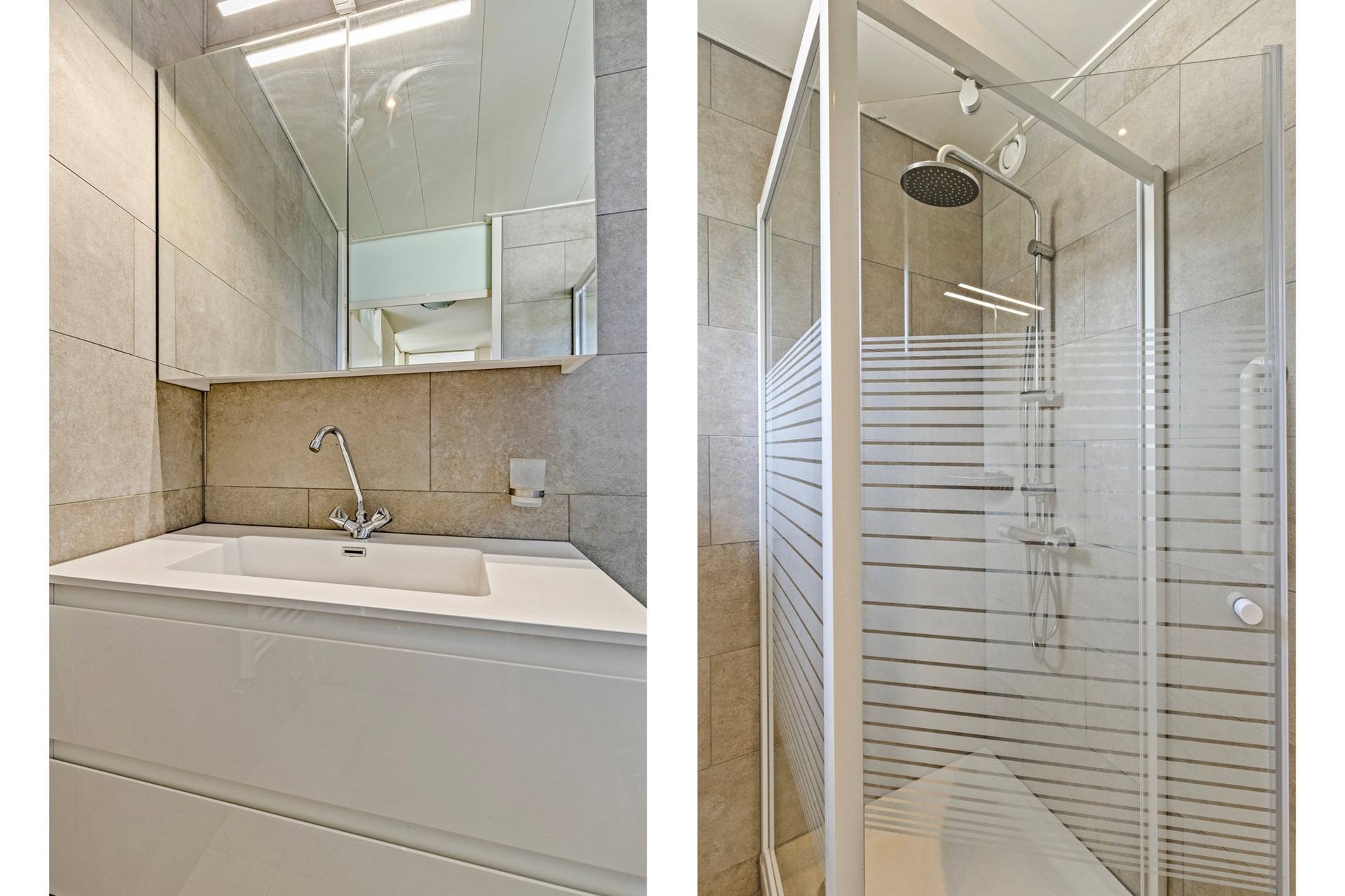 Overloop met vaste kast. Aan de voorzijde van de woning vindt u de ouderslaapkamer met elektrisch bedienbaar rolluik. Aan de achterzijde van deze leuke eengezinswoning bevindt zich nog een ruime slaapkamer met dakraam en een slaapkamer voorzien van een kleine dakkapel welke ook uitermate geschikt is als werk- en/of hobbyruimte. De geheel betegelde badkamer (2023) is voorzien van een douche, wastafelmeubel, inbouwverlichting en een 2e hangend closet.