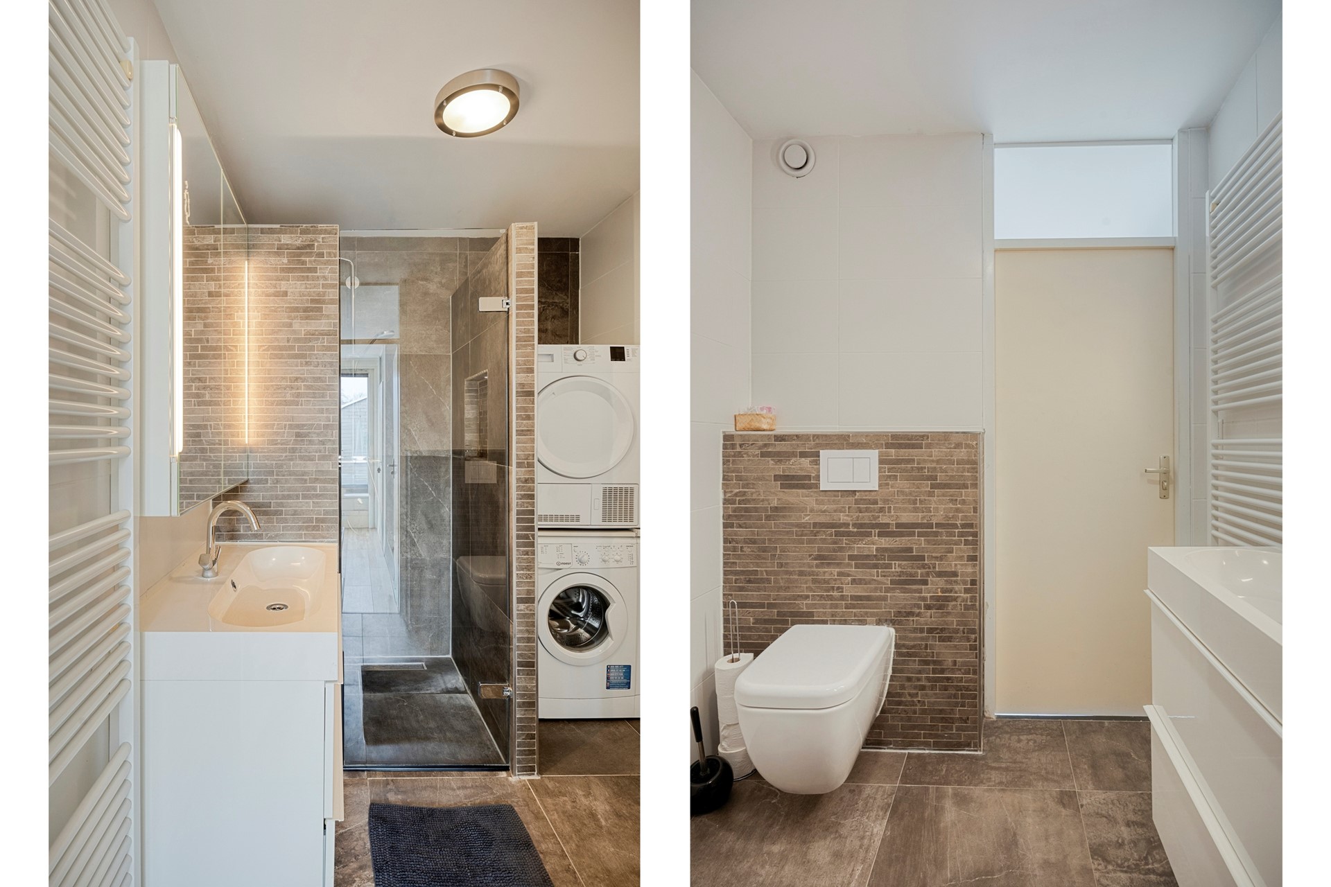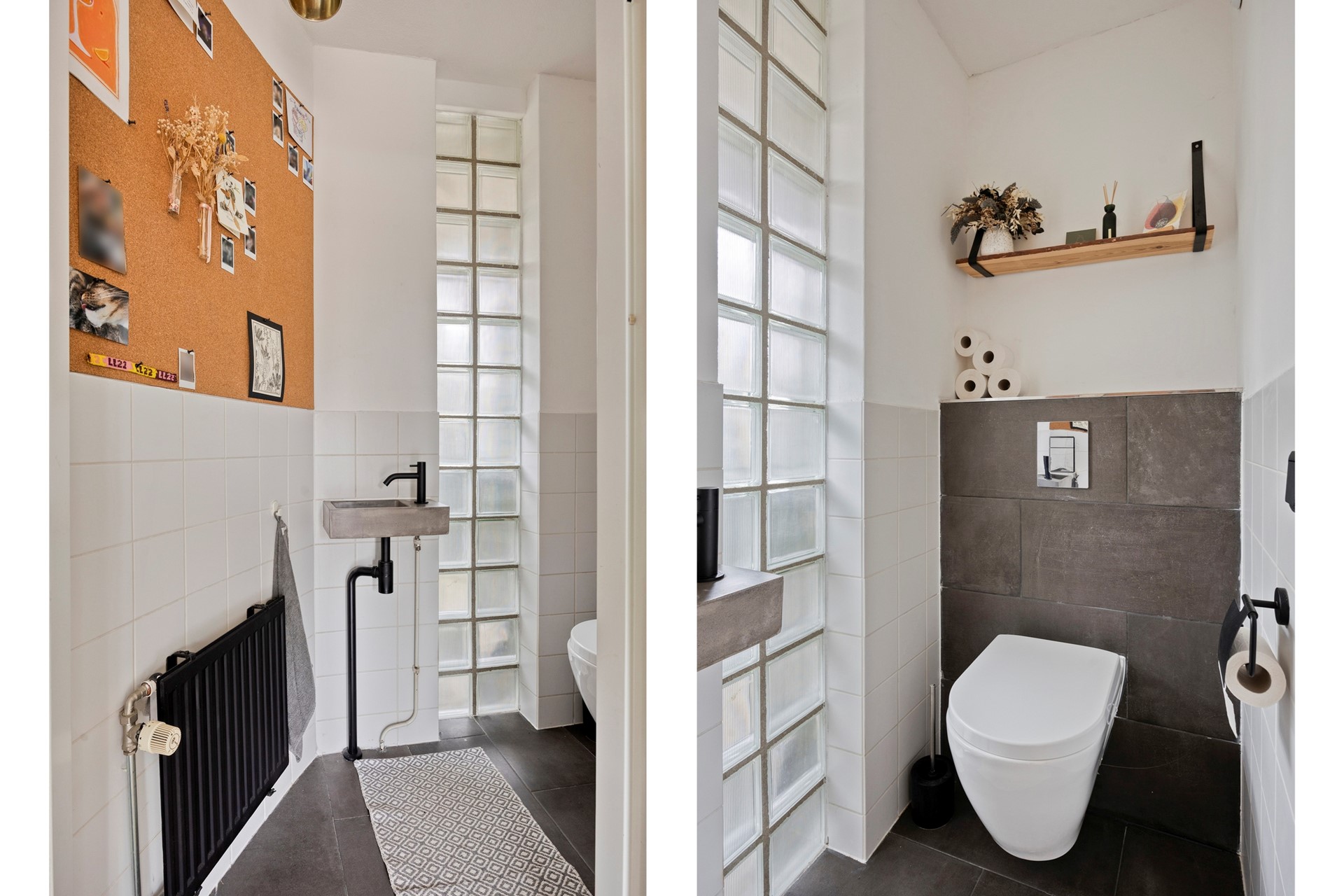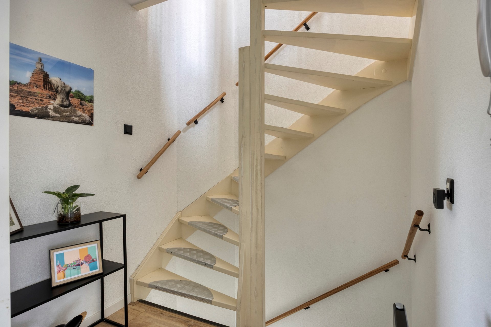 De eigen (fietsen)berging bevindt zich nabij de woning. Entree woning met meterkast/stadsverwarming (2022), trapkast en een moderne toiletruimte met hangend closet + fonteintje (2021). Trap naar de 1e verdieping.