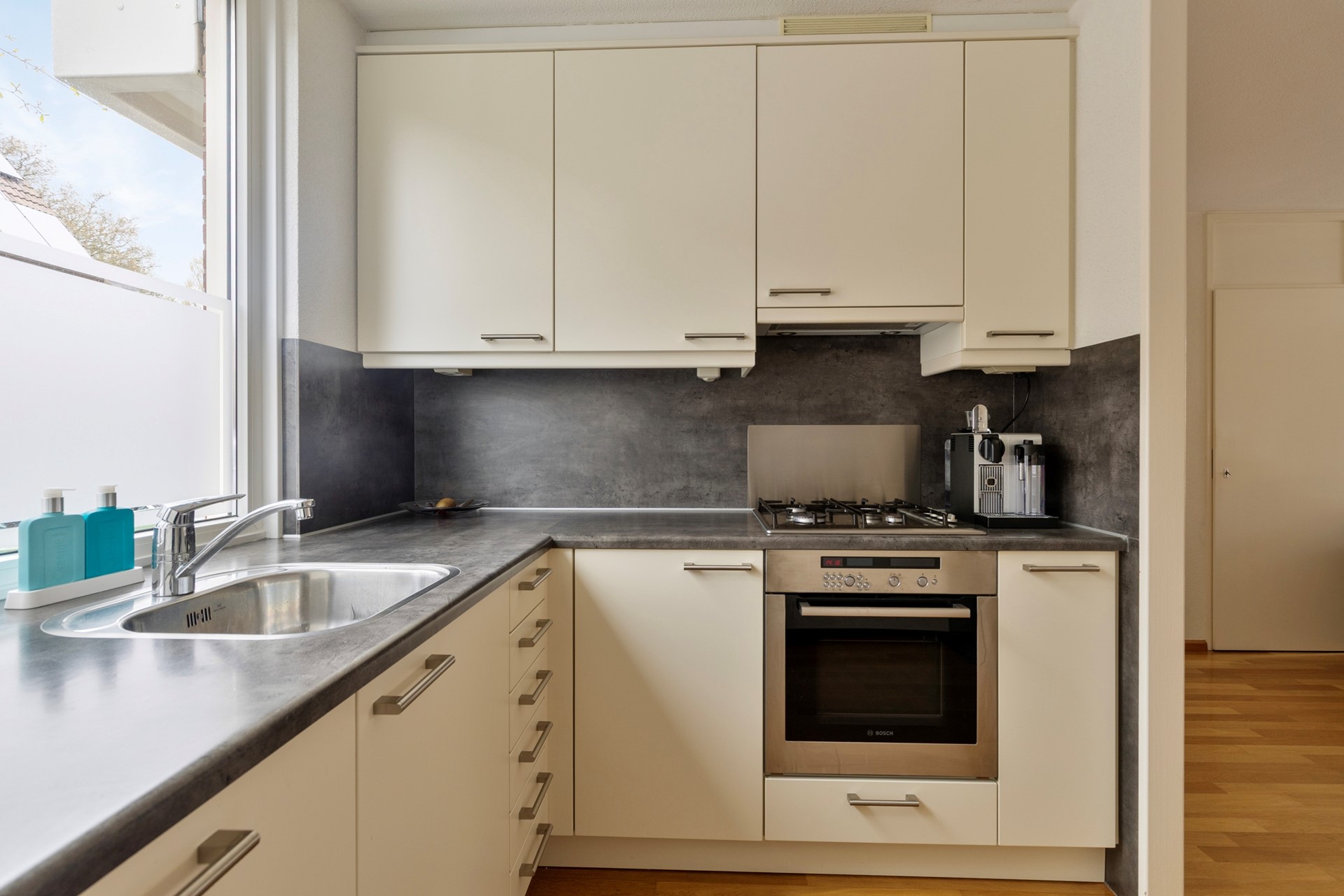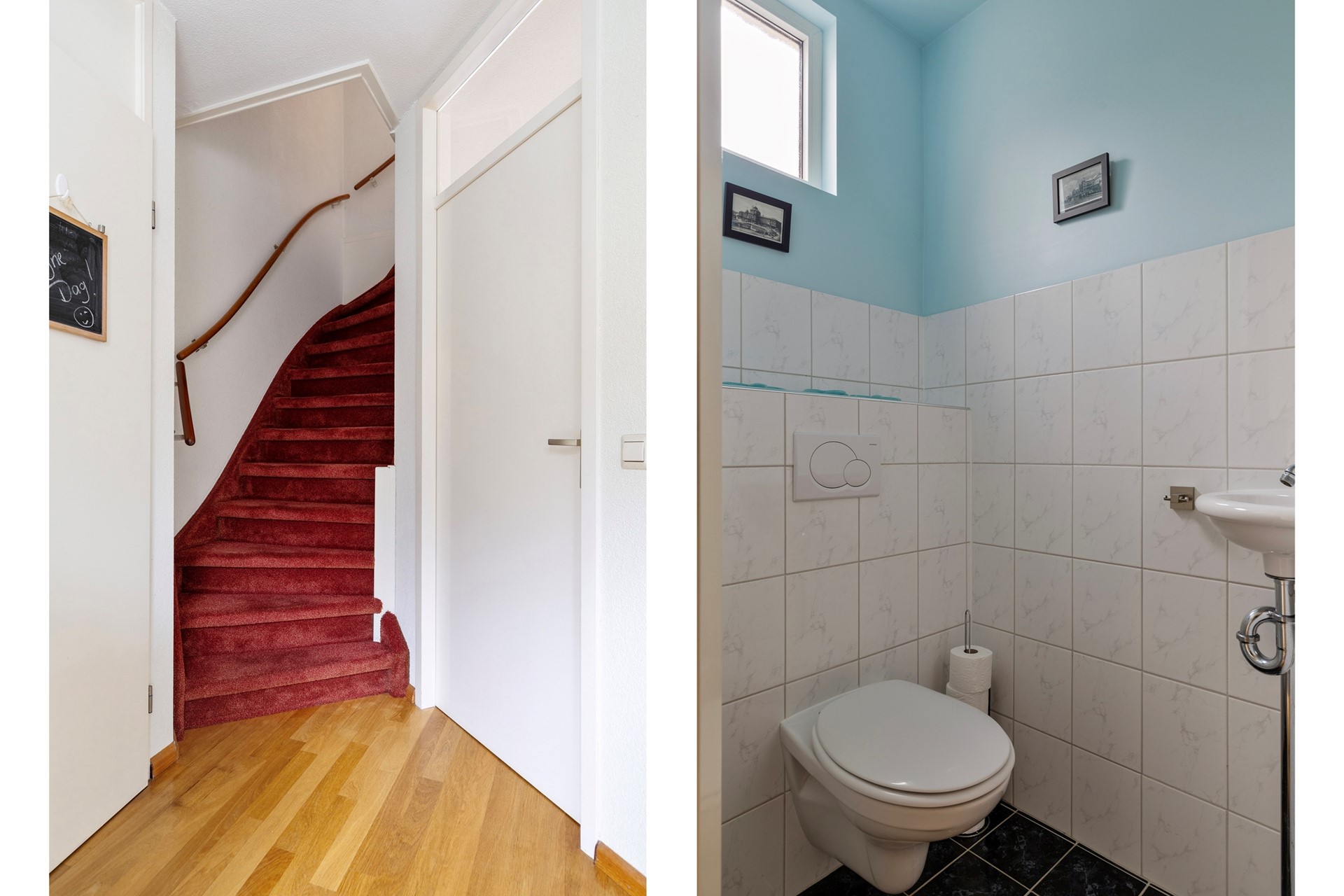 Entree woning, hal met meterkast/stadsverwarming-unit en een toiletruimte met hangend closet + fonteintje. Tuingerichte woonkamer met een open keuken. Door de grote raampartij geniet u van een lichte woonkamer met optimaal uitzicht op de achtertuin. De hoekkeuken is gelegen aan de voorzijde van de woning en beschikt o.a. over een 4-pitskookplaat, koelkast, combi oven en een vaatwasser (2023). Handige opbergruimte vindt u in de trapkast. De hal, woonkamer en keukenruimte zijn afgewerkt met een houten parketvloer. Tuin- en zonliefhebbers opgelet! De diepe achtertuin is gelegen op het zuiden. Beeldt u zich eens in hoe fijn deze tuin kan zijn wanneer u vrienden of familie hebt uitgenodigd voor een barbecue... Het zonnescherm, de stenen berging en de achterom zorgen voor comfort.