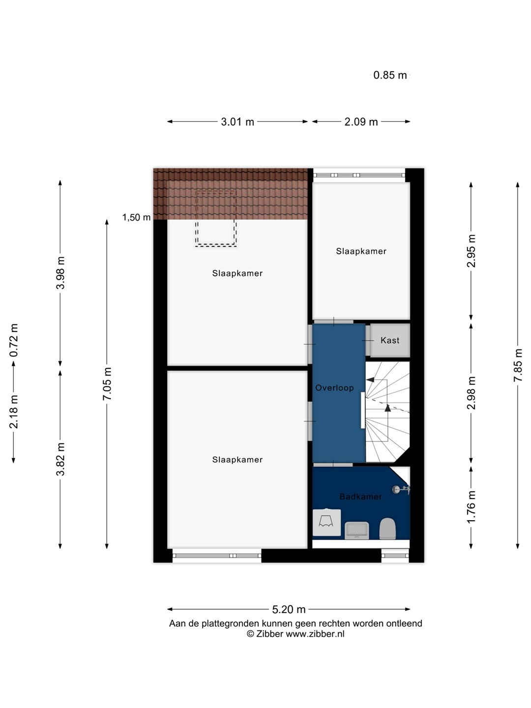 Overloop met vaste kast. Aan de voorzijde van de woning vindt u de ouderslaapkamer. Aan de achterzijde van deze leuke eengezinswoning bevindt zich nog een ruime slaapkamer met dakraam en een slaapkamer voorzien van een kleine dakkapel welke ook uitermate geschikt is als werk- en/of hobbyruimte. De badkamer is voorzien van een douche, wastafel, wasmachineaansluiting en een 2e hangend closet.