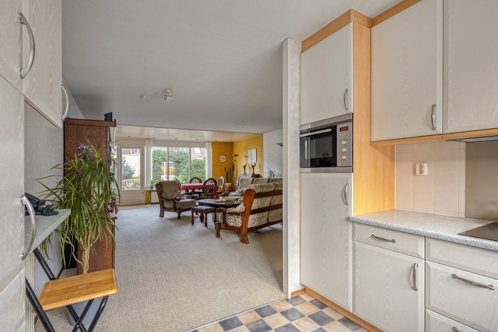 Entree woning, hal, meterkast (2022)/stadsverwarming en een toiletruimte met hangend closet + fonteintje. Door de aanbouw geniet u van een ruime woonkamer met uitzicht op de achtertuin. Extra ruime trapkast. De open keuken is gelegen aan de voorzijde van de woning en beschikt o.a. over een inductiekookplaat, koelkast, vriezer en een combi magnetron. Via de tuindeur in de woonkamer bereikt u de ruime achtertuin gelegen op het noordoosten met stenen berging (inclusief (koud) wateraansluiting) en een achterom. Door z’n afmeting en ligging is deze achtertuin heerlijk zonnig. Op korte loopafstand van de woning bevindt zich een speelplein, leuk voor de jongste kinderen.