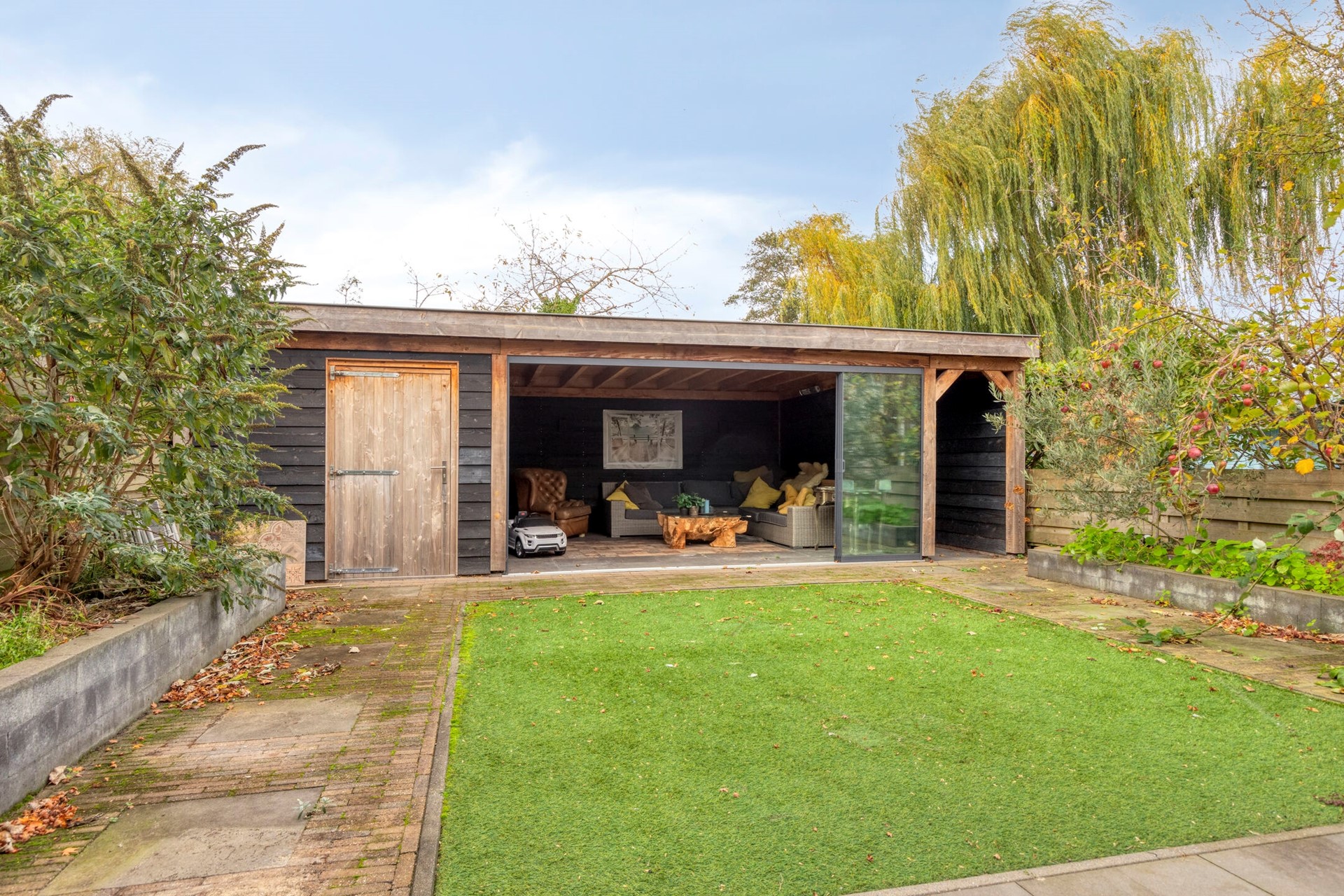 Entree woning, hal met meterkast (2019)/stadsverwarming en een moderne toiletruimte. Ruime tuingerichte woonkamer met open trap. Door de raampartij en schuifpui geniet u van veel daglicht en een optimaal uitzicht op de achtertuin. De houtkachel biedt u het gehele jaar een gezellig vuurtje. Ook in de gezellige woon/eetkeuken is het goed vertoeven. De moderne keuken (2019) beschikt o.a. over een inductiekookplaat inclusief geïntegreerde afzuiging (Bora), combi oven, hetelucht oven en een vaatwasser. De vrijstaande Amerikaanse koelkast met display wordt door de verkoper ter overname aangeboden. De woonkamer en keukenruimte zijn afgewerkt met een eiken houten vloer. Via de schuifpui in de woonkamer bereikt u de zonnige achtertuin gelegen op het westen (middag-/avondzon) met elektrisch bedienbaar zonnescherm en toegangsdeur naar de garage. Kenmerkend voor deze opvallend ruime tuin is de vrije ligging waardoor u veel privacy geniet. De houten veranda met aangebouwde berging is afsluitbaar middels glazen schuifwanden en maakt deze woning extra bezichtigingswaardig. Achter de woning bevindt zich een (wandel)pad, groen en water. Ook veel speelmogelijkheden voor kinderen in de directe omgeving van de woning.