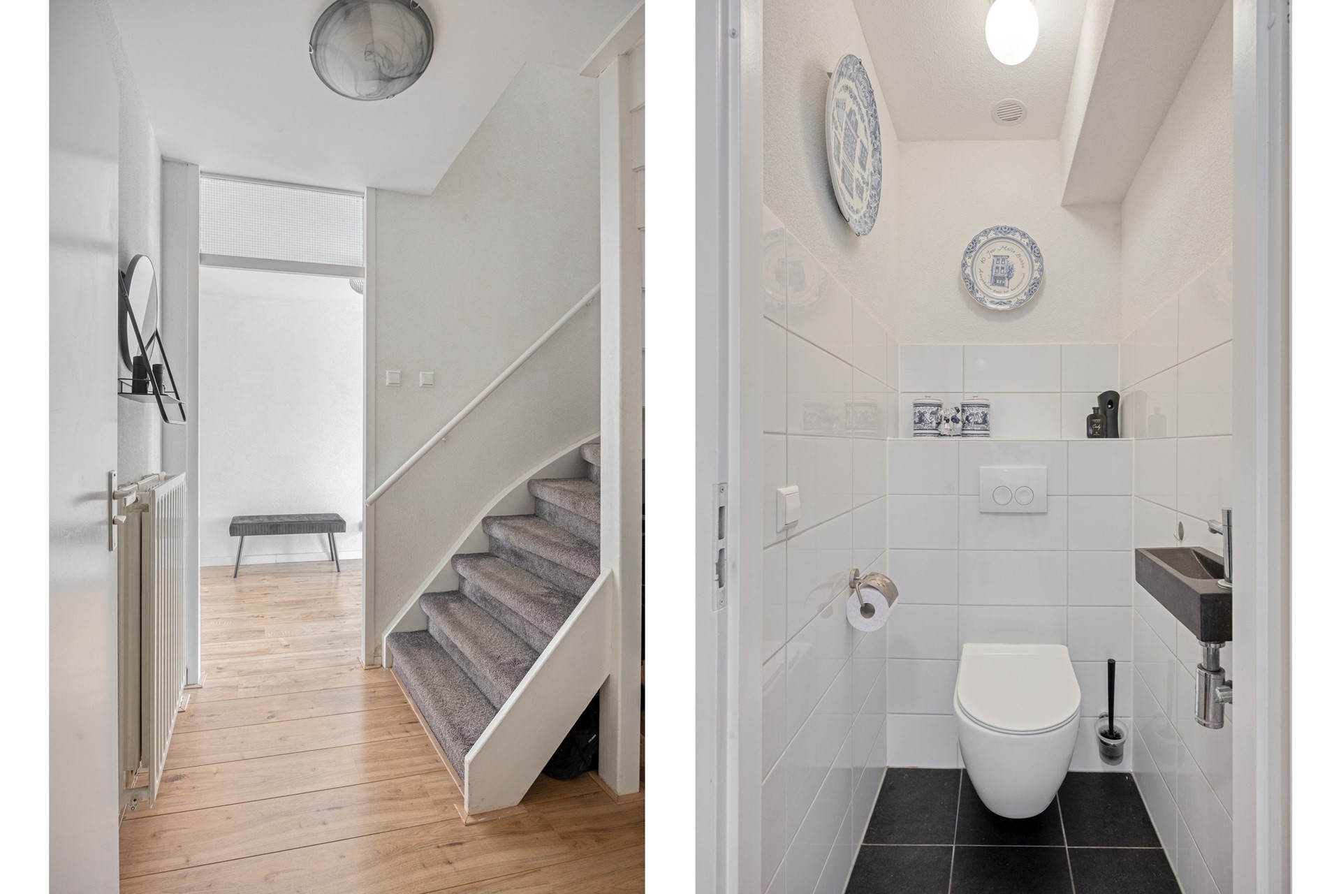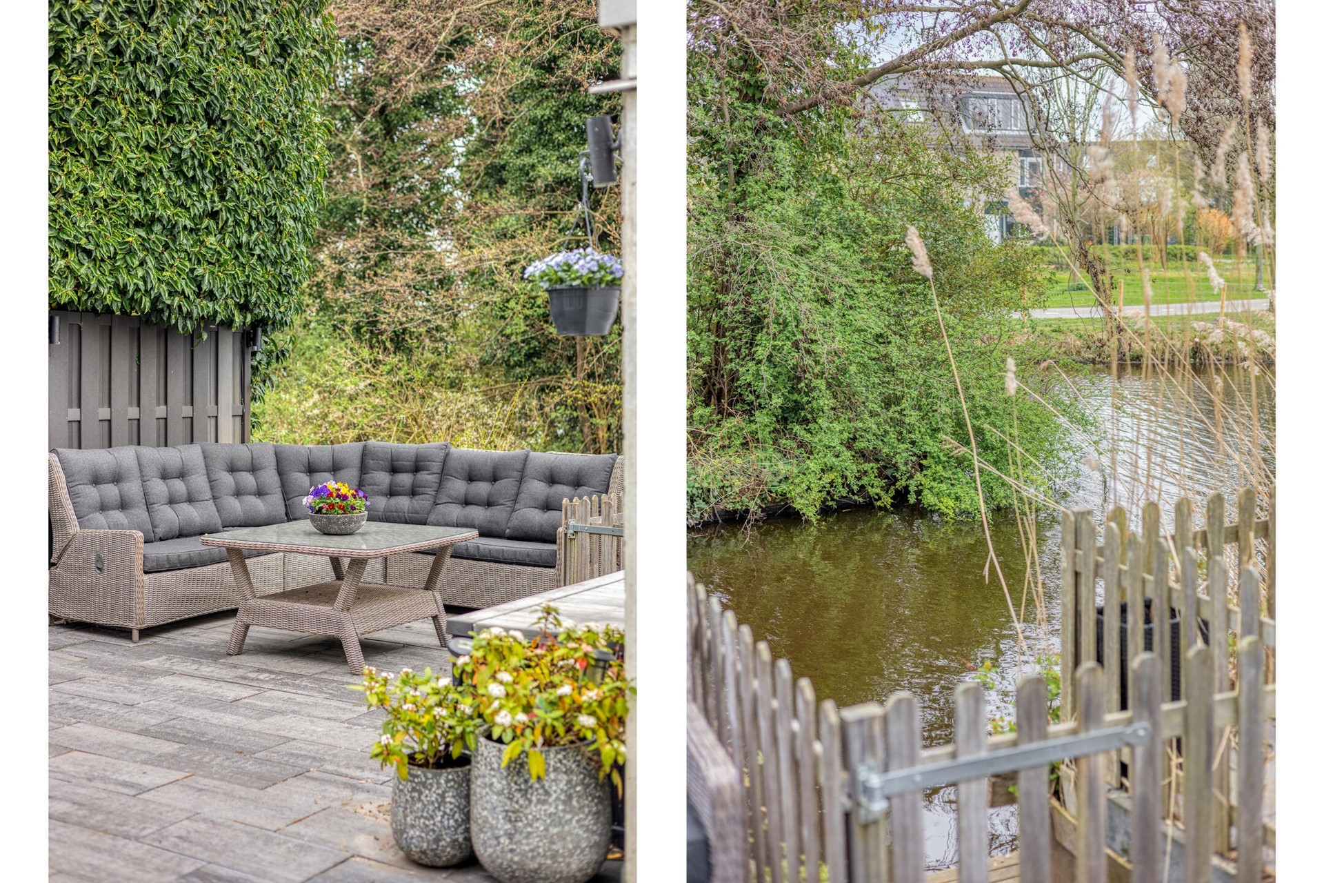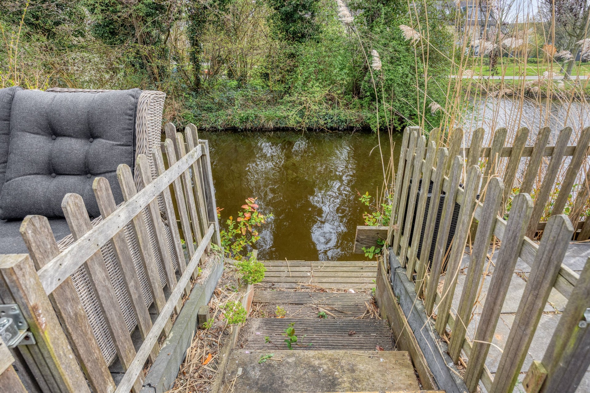 Voortuin. Entree woning, hal met meterkast/stadsverwarming en een toiletruimte. Opvallend ruime uitgebouwde woonkamer. Er is genoeg ruimte voor een grote eettafel. Beeldt u zich eens in hoe leuk deze plek in huis kan zijn wanneer u vrienden of familie hebt uitgenodigd voor een diner... De moderne hoekkeuken (2021) bevindt zich aan de voorzijde van de woning en is o.a. voorzien van een inductiekookplaat, rvs afzuigkap, combi oven, koel/vriescombinatie (2026) en een vaatwasser. Het elektrisch bedienbaar sunscreen zorgt voor extra comfort. De hal, woonkamer en keukenruimte zijn afgewerkt met een laminaatvloer. Via de tuindeur in de woonkamer bereikt u de zonnige achtertuin (O) met houten berging en achterom. De vrije ligging, het uitzicht op water en groen en de aansluiting op open vaarwater maken deze achtertuin extra bezichtigingswaardig. Vanuit uw eigen tuin in een (laag) bootje stappen om naar de Kaag of de bruisende binnenstad van Leiden te varen…, wat wilt u nog meer? Via de tussenhal met trapkast, moderne toiletruimte inclusief hangend closet + fonteintje (2020) en trapopgang bereikt u de 1e verdieping.