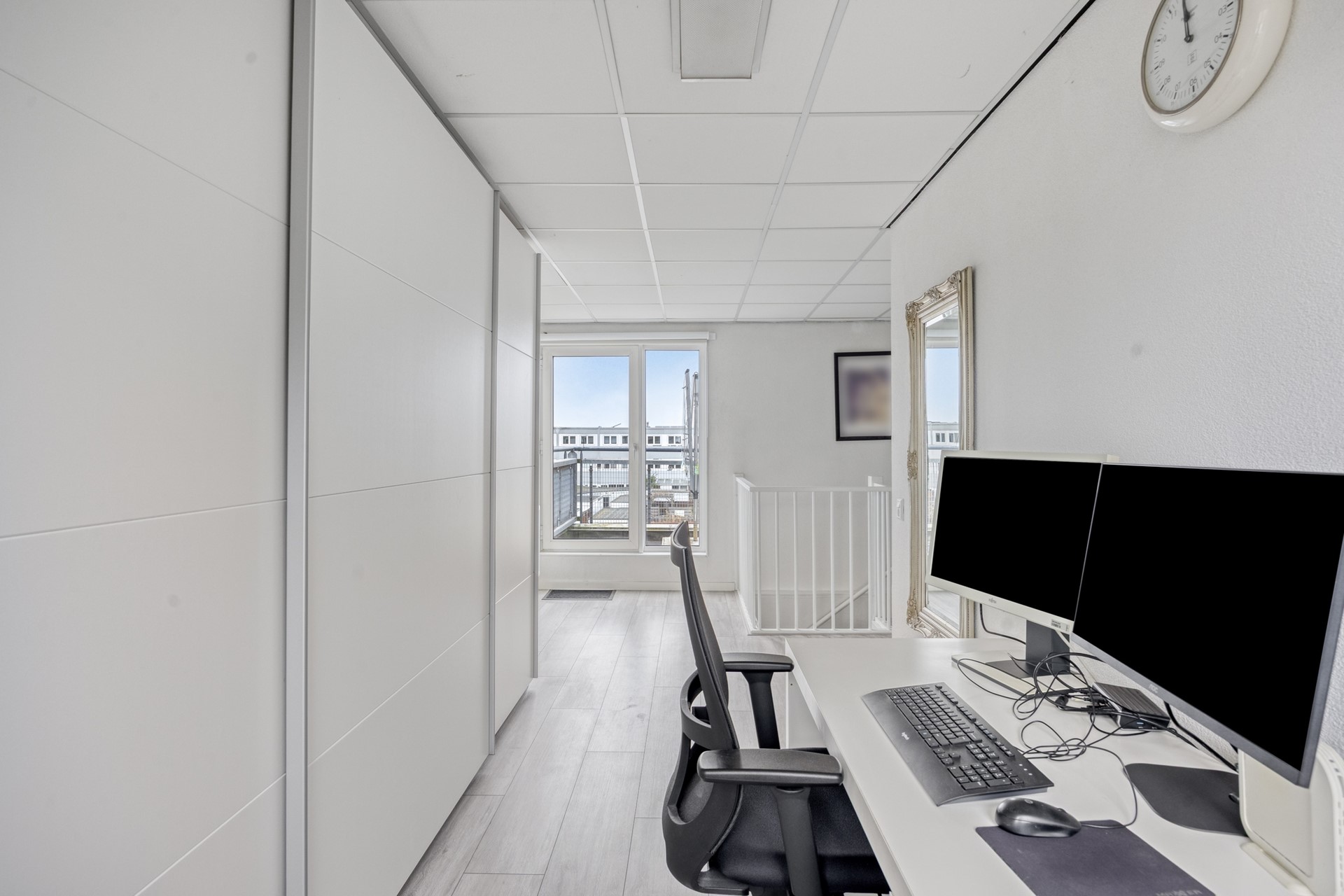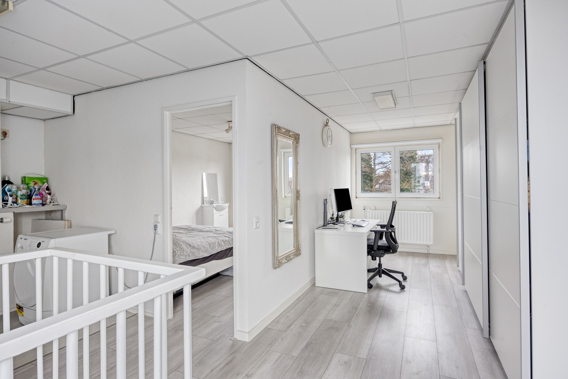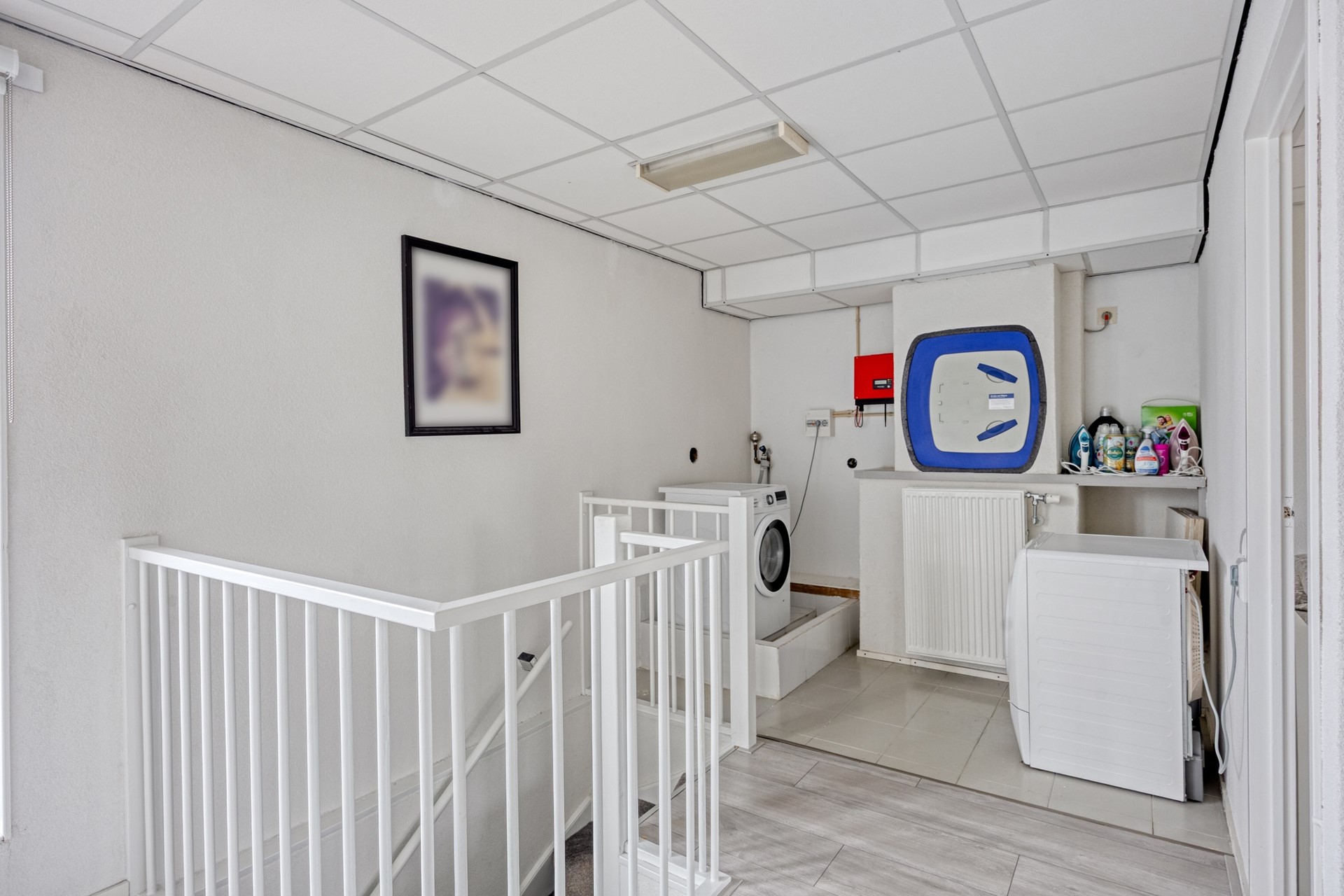 De royale L-vormige overloop met wasmachineaansluiting, omvormer voor de zonnepanelen, radiator en de mechanische ventilatie- unit (WTW) is thans in gebruik als werk- en/of hobbyruimte. Het is tevens mogelijk om hier een extra slaapkamer te creëren. Aan de achterzijde van de woning bevindt zich nog een slaapkamer met wastafel. Het dakterras (W) maakt het geheel compleet!