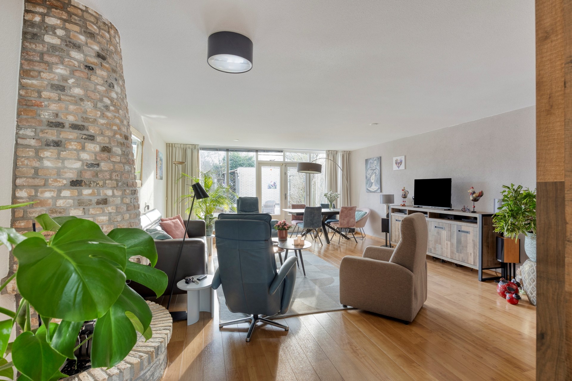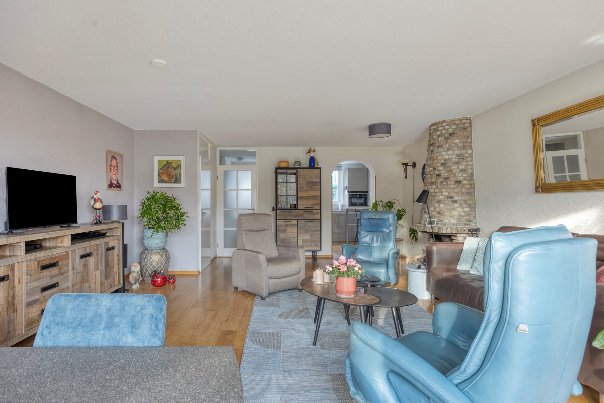 Entree woning. Hal met meterkast/stadsverwarming en een moderne toiletruimte met hangend closet + fonteintje (2022). De ruime uitgebouwde woonkamer maakt deze woning extra bezichtigingswaardig. Door de gashaard geniet u het gehele jaar door van een sfeervol vuurtje. Er is genoeg ruimte voor een grote eettafel. Beeldt u zich eens in hoe fijn deze plek in huis kan zijn wanneer u vrienden of familie hebt uitgenodigd voor een diner... De verzorgde open keuken is gelegen aan de voorzijde van de woning en is o.a. voorzien van een 5-pitskookplaat, rvs afzuigkap, handige apothekerskast, koel/vriescombinatie, combi oven, vaatwasser en een bartafel met twee barkrukken. De trapkast zorgt voor opbergruimte. De achterpui van de begane grond is voorzien van dubbele openslaande deuren. Door de grote raampartij geniet u van een lichte woonkamer met optimaal uitzicht op de achtertuin. De zonnige achtertuin is gelegen op het zuidoosten en beschikt o.a. over een zonnescherm, stenen berging en een achterom. Kenmerkend voor deze aantrekkelijke tuin is de vrije ligging waardoor u veel privacy geniet.