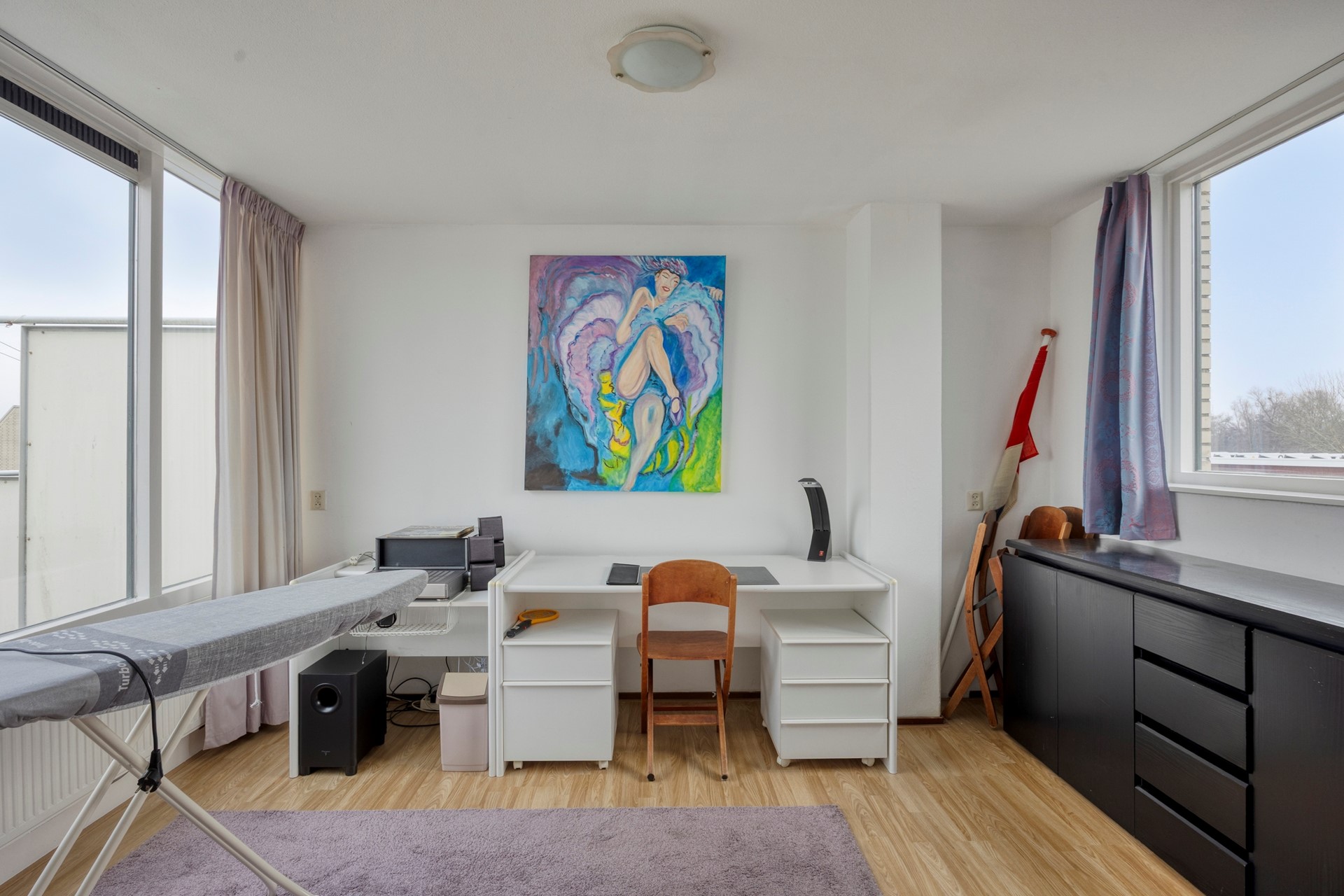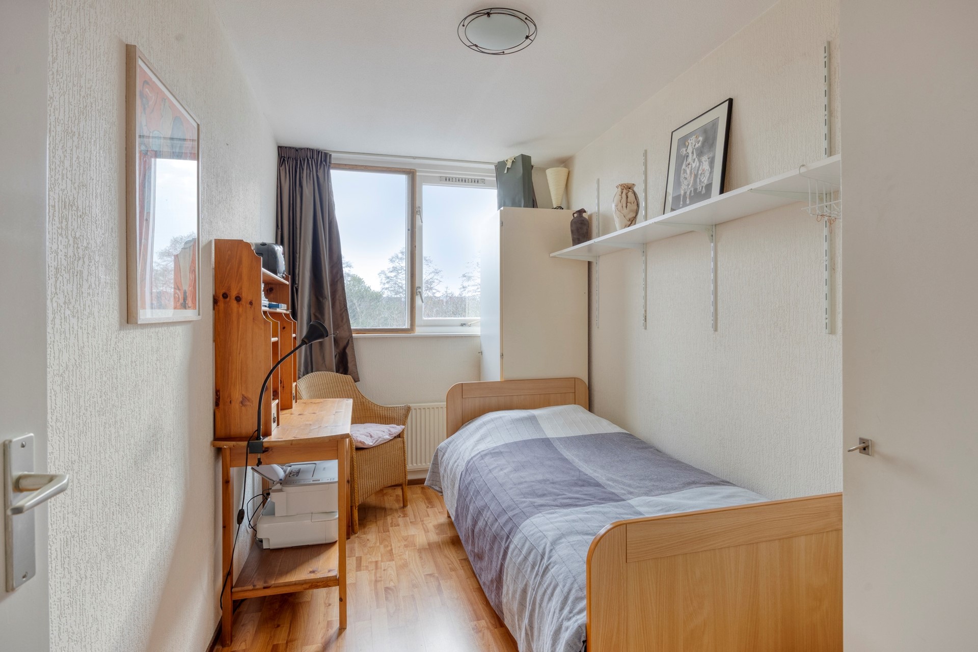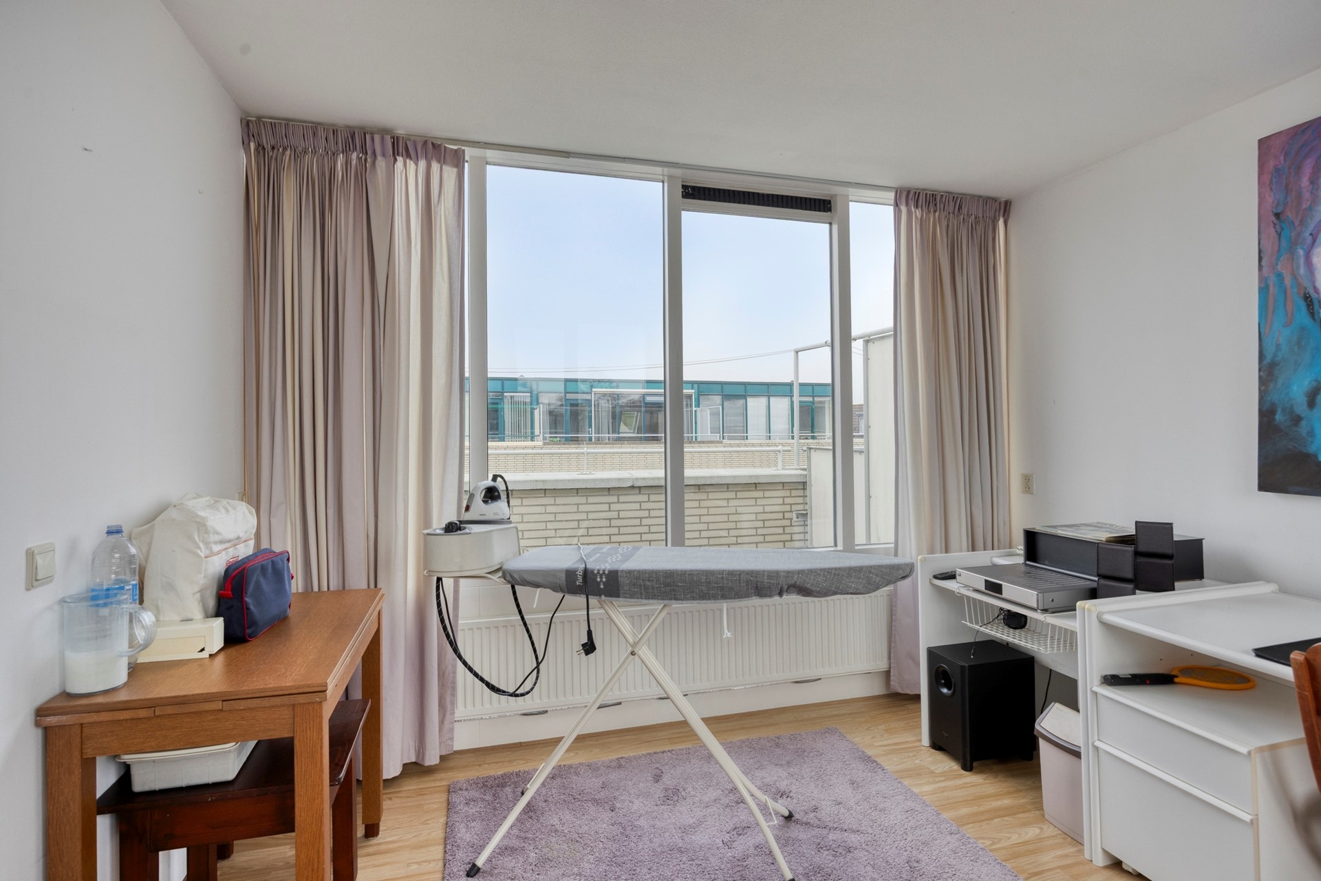 Overloop met wasmachineaansluiting, omvormer voor de zonnepanelen, opstelplaats voor de mechanische ventilatie-unit en de toegang tot het dakterras (NW). Thuiswerkers en hobbyisten opgelet! De ruime zolder(slaap)kamer is ook uitermate geschikt als (thuis)werk- en/of hobbyruimte.
