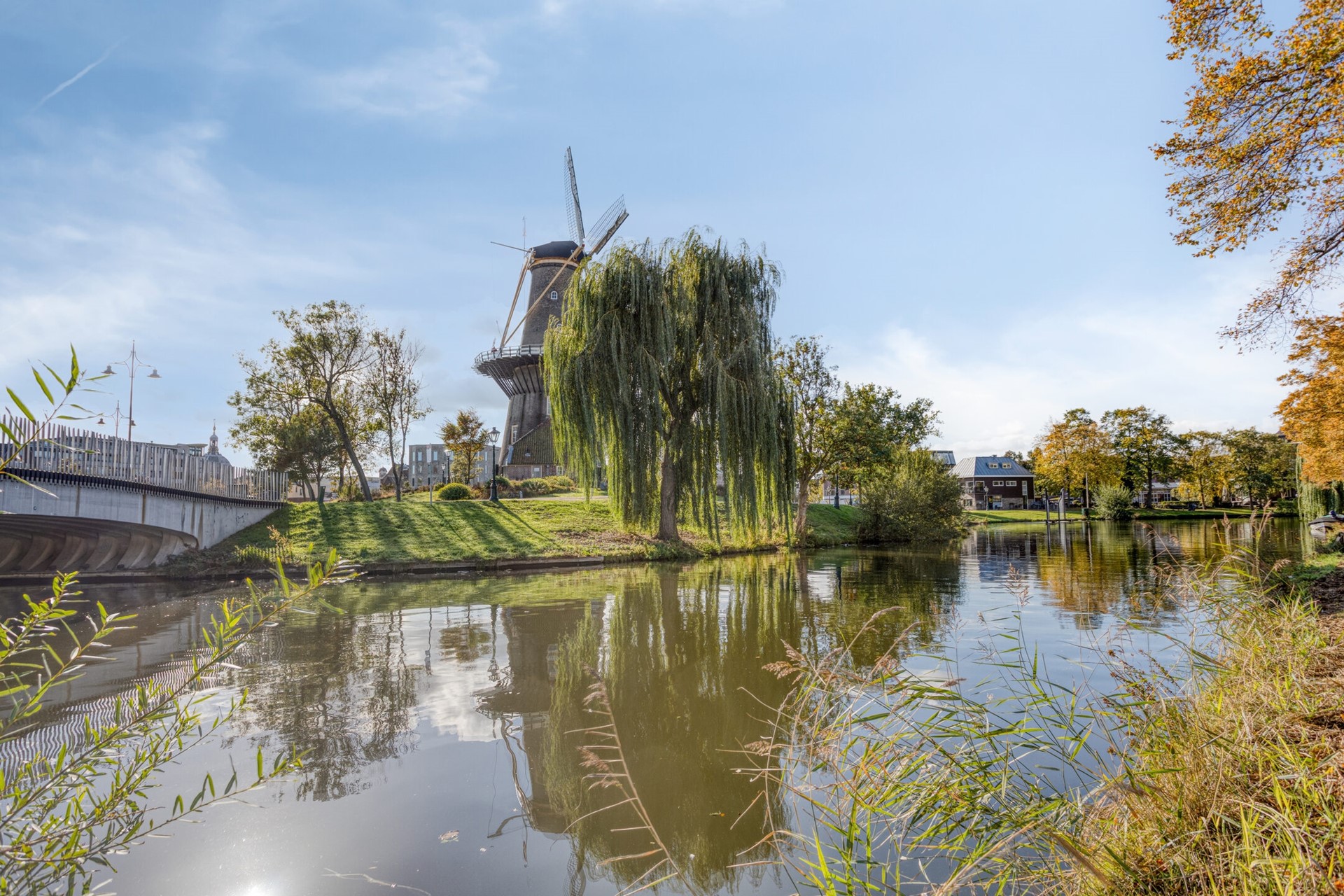 Entree woning, hal met meterkast en de trap naar de 1e verdieping. Aan de voorzijde van de woning bevindt zich een (slaap)kamer met uitzicht op de singel en molen De Valk. Via een doorloop met vaste kast bereikt u de ruime gezellige woonkeuken met schouw en kenmerkende schuiframen. De hoekkeuken is voorzien van een granieten werkblad, 5-pitskookplaat, rvs afzuigkap, oven, koel/vriescombinatie en een vaatwasser. Toegang tot de badkamer met douche, hangend closet en een toegangsdeur naar het knusse tuintje/plaats.