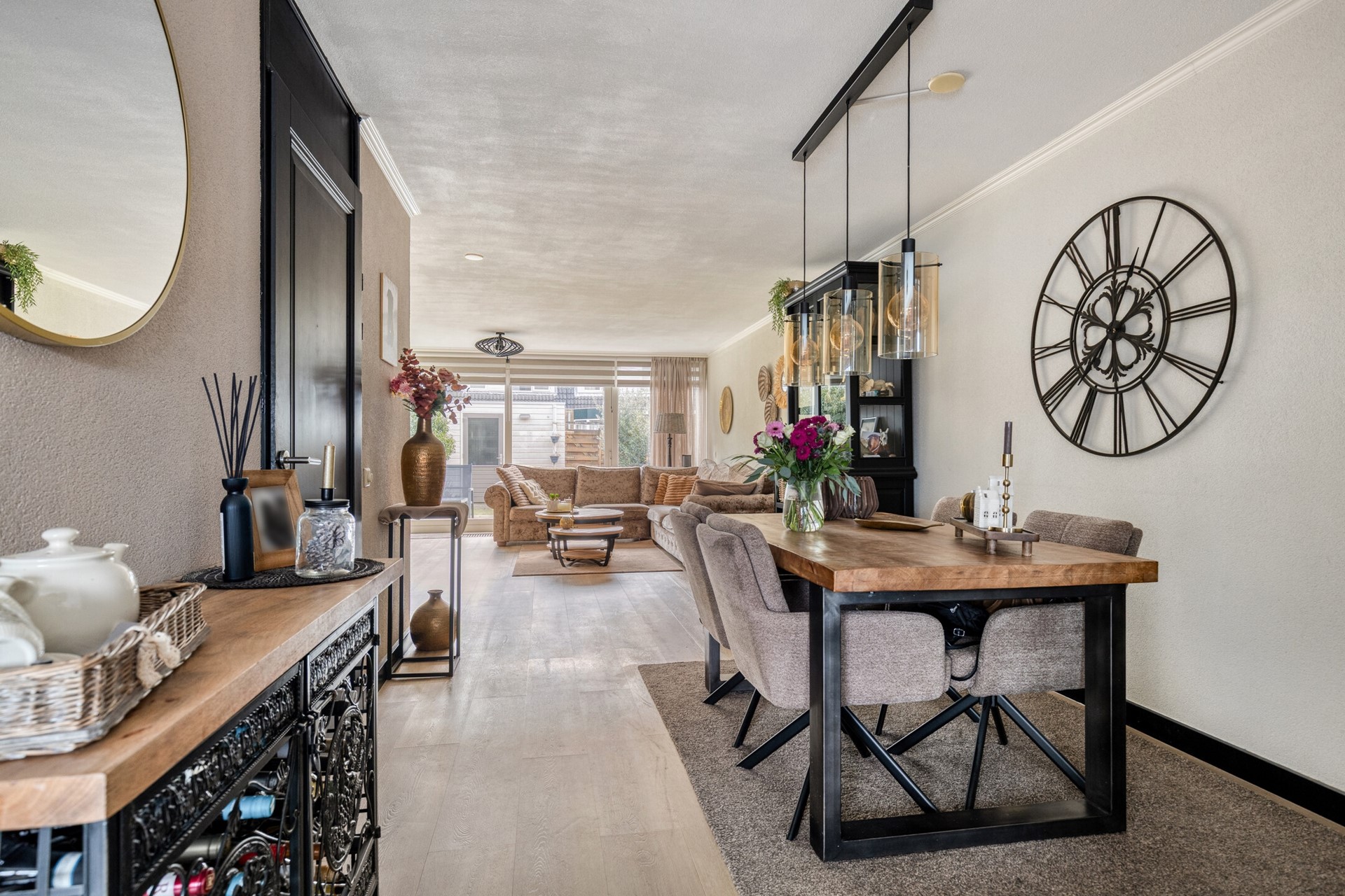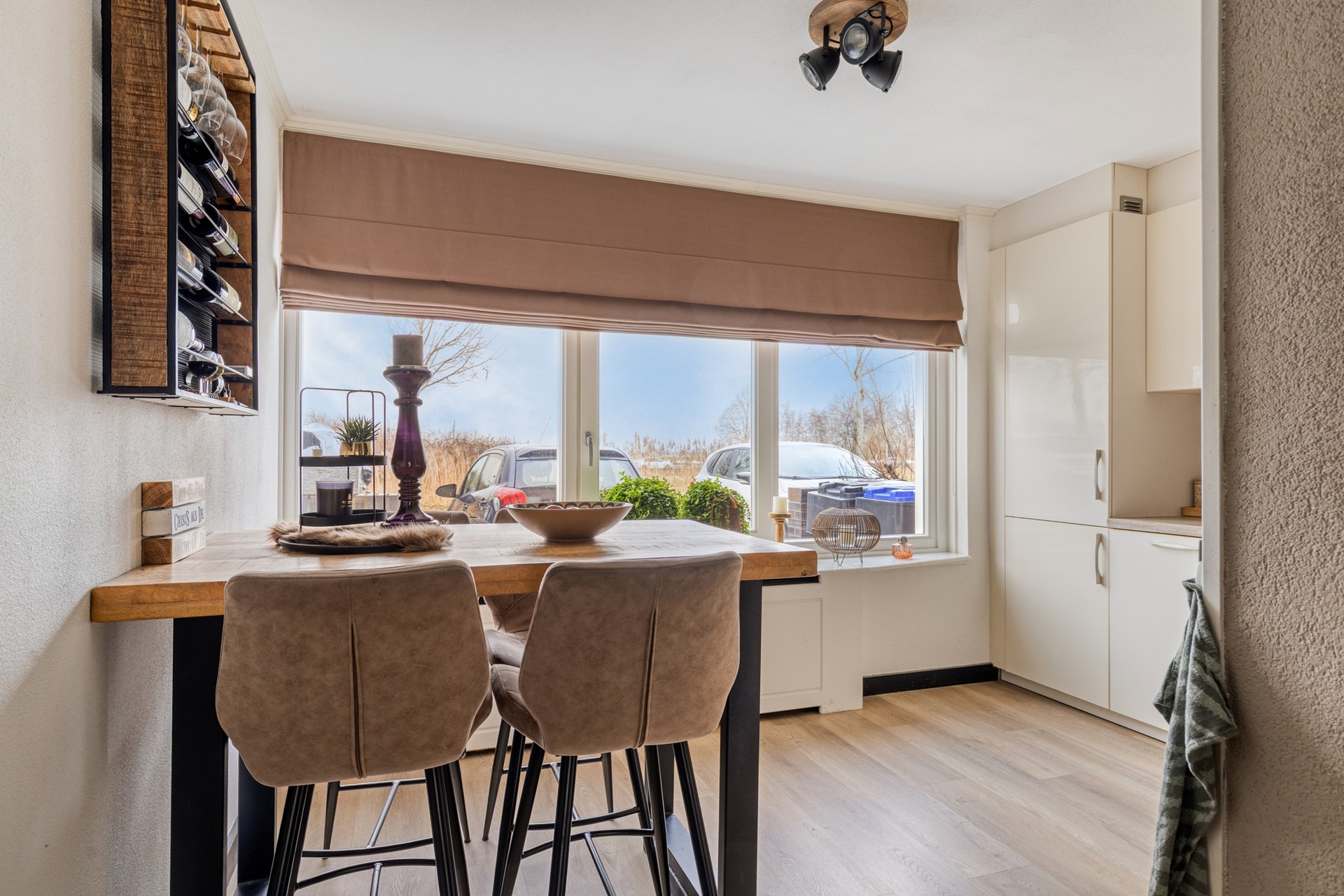 Voortuin met twee eigen parkeerplaatsen, elektra en wateraansluiting. Entree van de woning, hal met meterkast. Uitgebouwde woonkamer met convector en schuifpui. Door de grote raampartij geniet u van een lichte woonkamer met optimaal uitzicht op de achtertuin. Er is genoeg ruimte voor een grote eettafel. Beeldt u zich eens in hoe fijn deze plek in huis kan zijn wanneer u vrienden of familie hebt uitgenodigd voor een diner... De moderne open keuken bevindt zich aan de voorzijde van de woning en beschikt o.a. over een inductiekookplaat, rvs afzuigkap, combi oven, koel/vriescombinatie, handige Le Mans kasten en een vaatwasser (2023). De gezellige eetbar met vier barstoelen worden door de verkoper ter overname aangeboden. Het kozijn in de keukenruimte is in 2025 vernieuwd. De hal, woonkamer en keukenruimte zijn afgewerkt met een onderhoudsvriendelijke pvc vloer. Zonliefhebbers opgelet! Via de schuifpui in de woonkamer bereikt u de zonnige achtertuin gelegen op het zuiden met elektrisch bedienbaar zonnescherm, houten berging en een achterom. Via de tussenhal met ruime trapkast en moderne toiletruimte (2016) bereikt u via de luxe beklede trap (inclusief ledverlichting) de 1e verdieping.