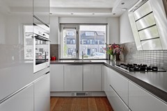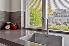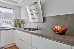 Voortuin (NO). Hal met recent vernieuwde meterkast, trapkast en toiletruimte met hangend closet + fonteintje. Lichte tuingerichte woonkamer. De open keukenruimte is gelegen aan de voorzijde van de woning. Deze keuken beschikt o.a. over een composiet werkblad, 4-pitskookplaat, design afzuigkap, Quooker, combi oven en een koel/vriescombinatie. De hal, woonkamer en keukenruimte zijn afgewerkt met een houten parketvloer. Zon- en tuinliefhebbers opgelet! Via de tuindeur in de woonkamer bereikt u de heerlijk zonnige achtertuin gelegen op het zuidwesten met elektrisch bedienbaar zonnescherm, stenen berging en een achterom.