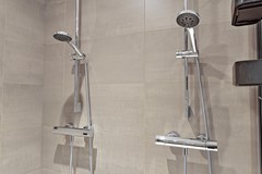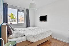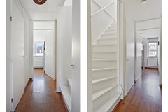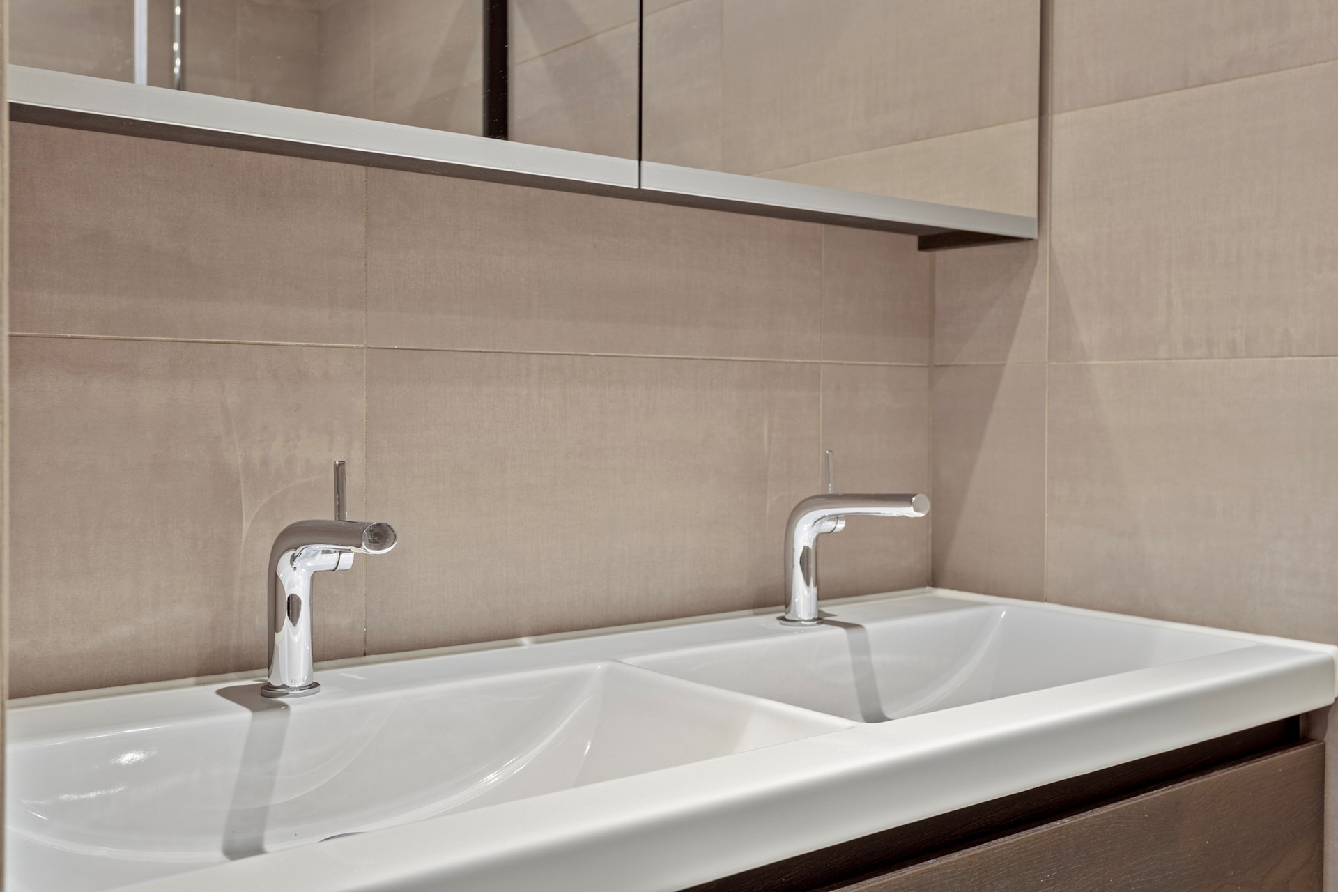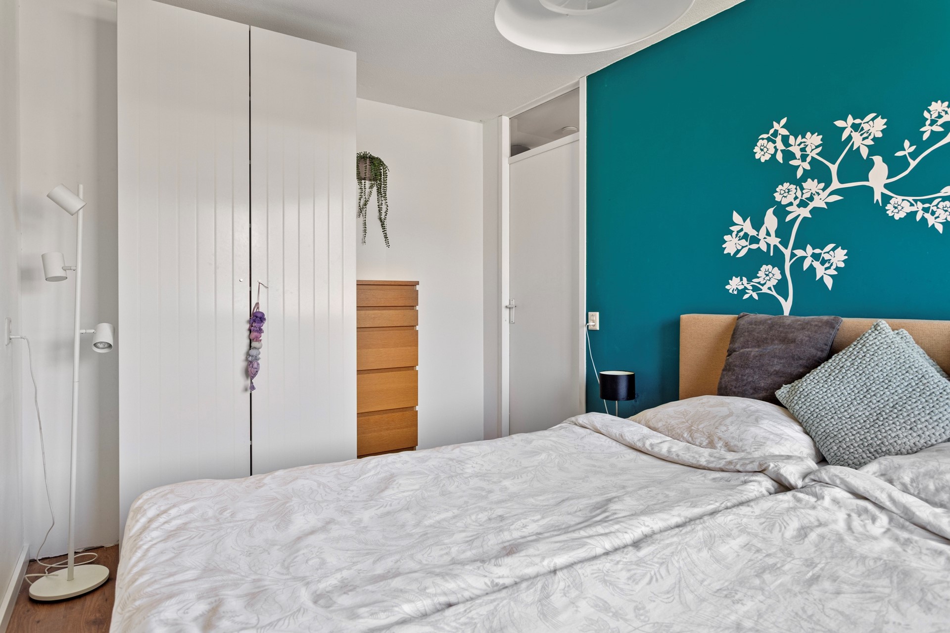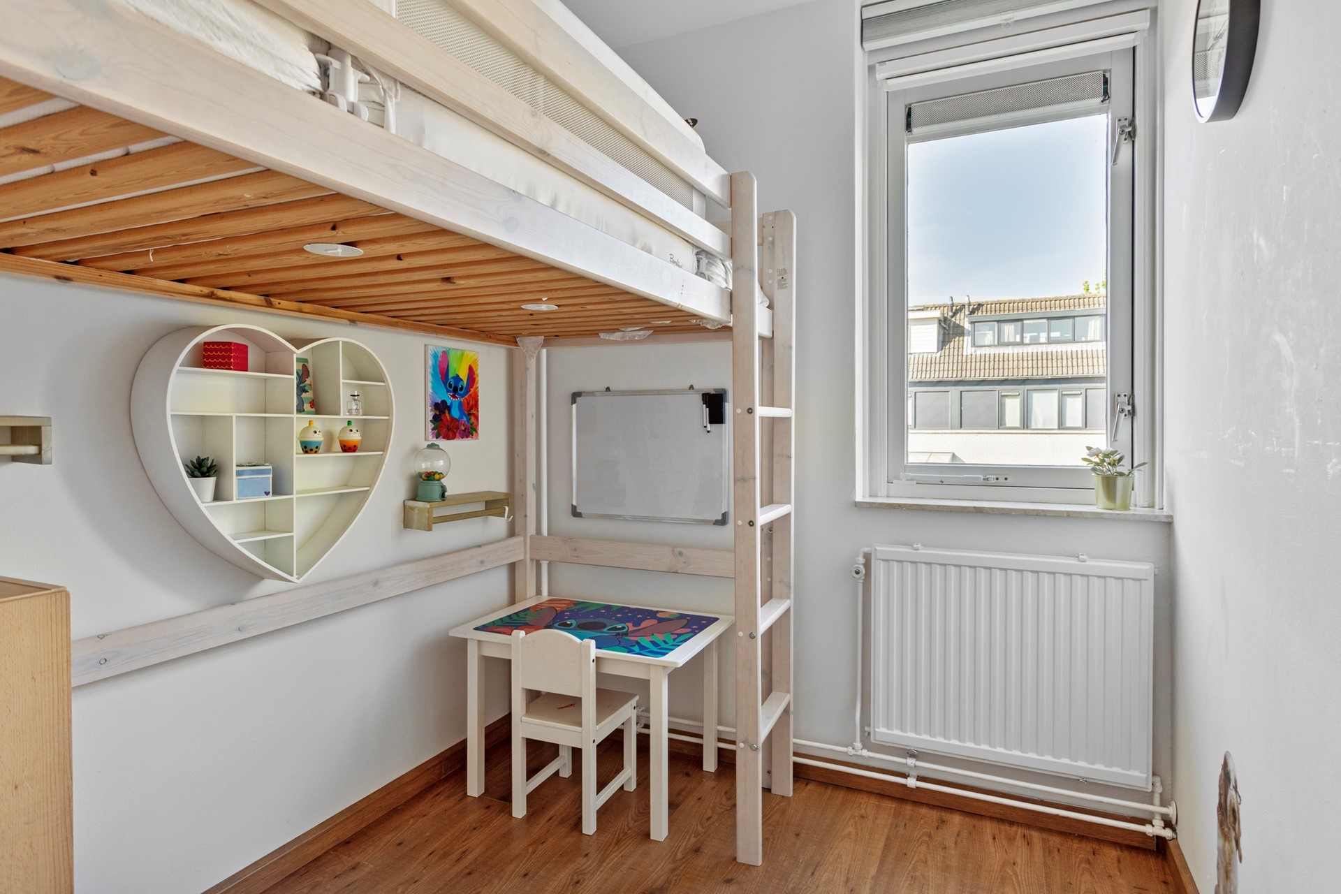 Overloop met vaste kast en de trap naar de 2e verdieping. Aan de achterzijde van de woning bevinden zich twee slaapkamers voorzien van elektrisch bedienbare rolluiken. Aan de voorzijde van de woning vindt u de derde slaapkamer. De moderne badkamer (2022) is voorzien van een dubbele wastafel, luxe dubbele douche, inbouwverlichting, designradiator en een 2e (hangend) toilet.
