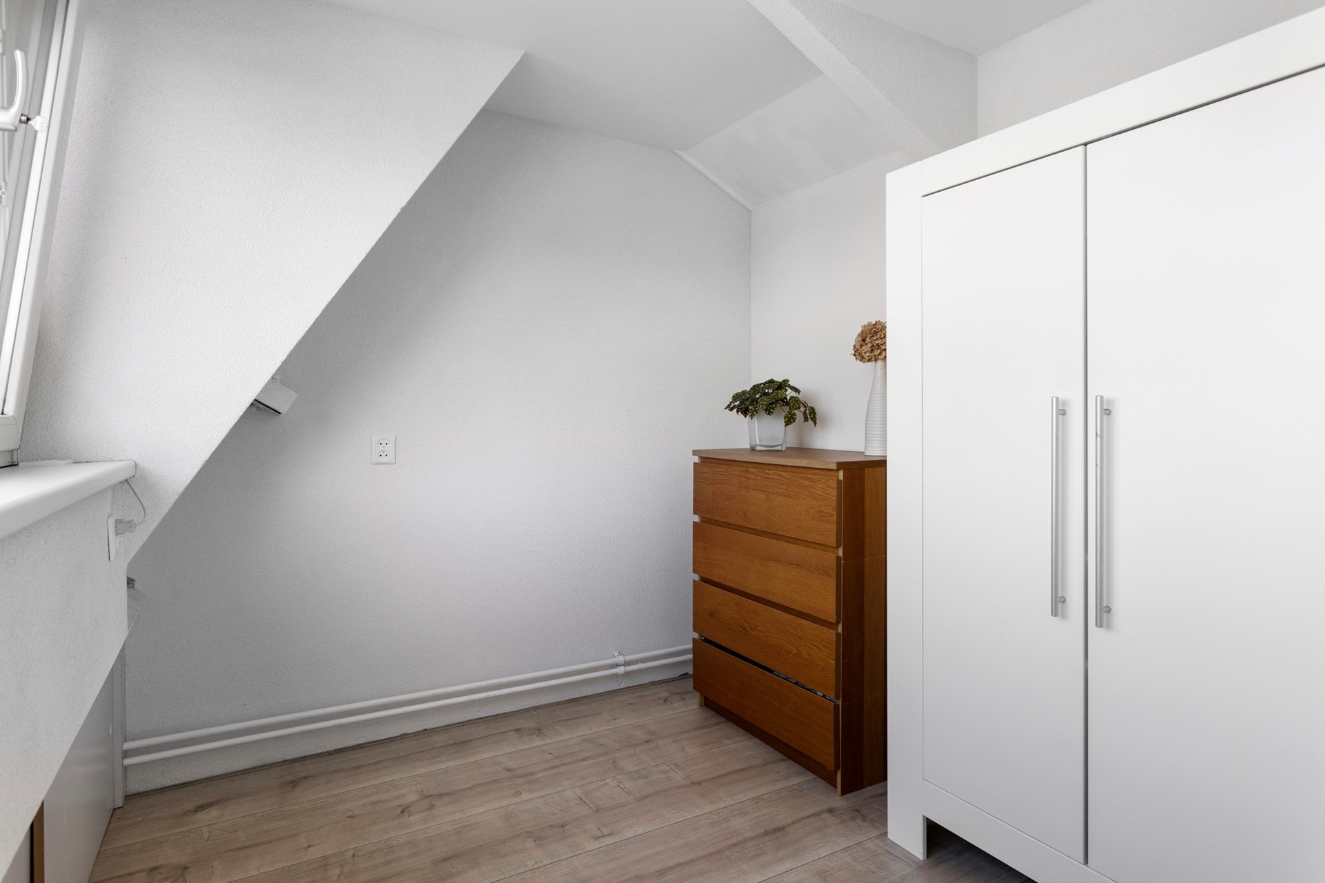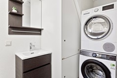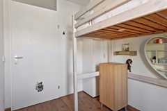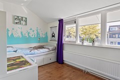 Overloop met wastafel, wasmachineaansluiting, mechanische ventilatie-unit en de opstelplaats voor de cv-ketel. Het dakraam zorgt voor daglicht. Omdat deze verdieping aan de voor- en achterzijde is voorzien van een dakkapel (kunststof kozijn) geniet u van extra woonruimte. De twee slaapkamers op deze verdieping zijn voorzien van een elektrisch bedienbaar rolluik.