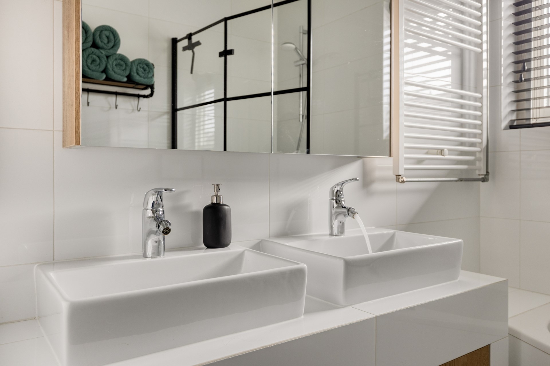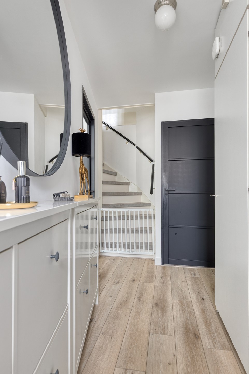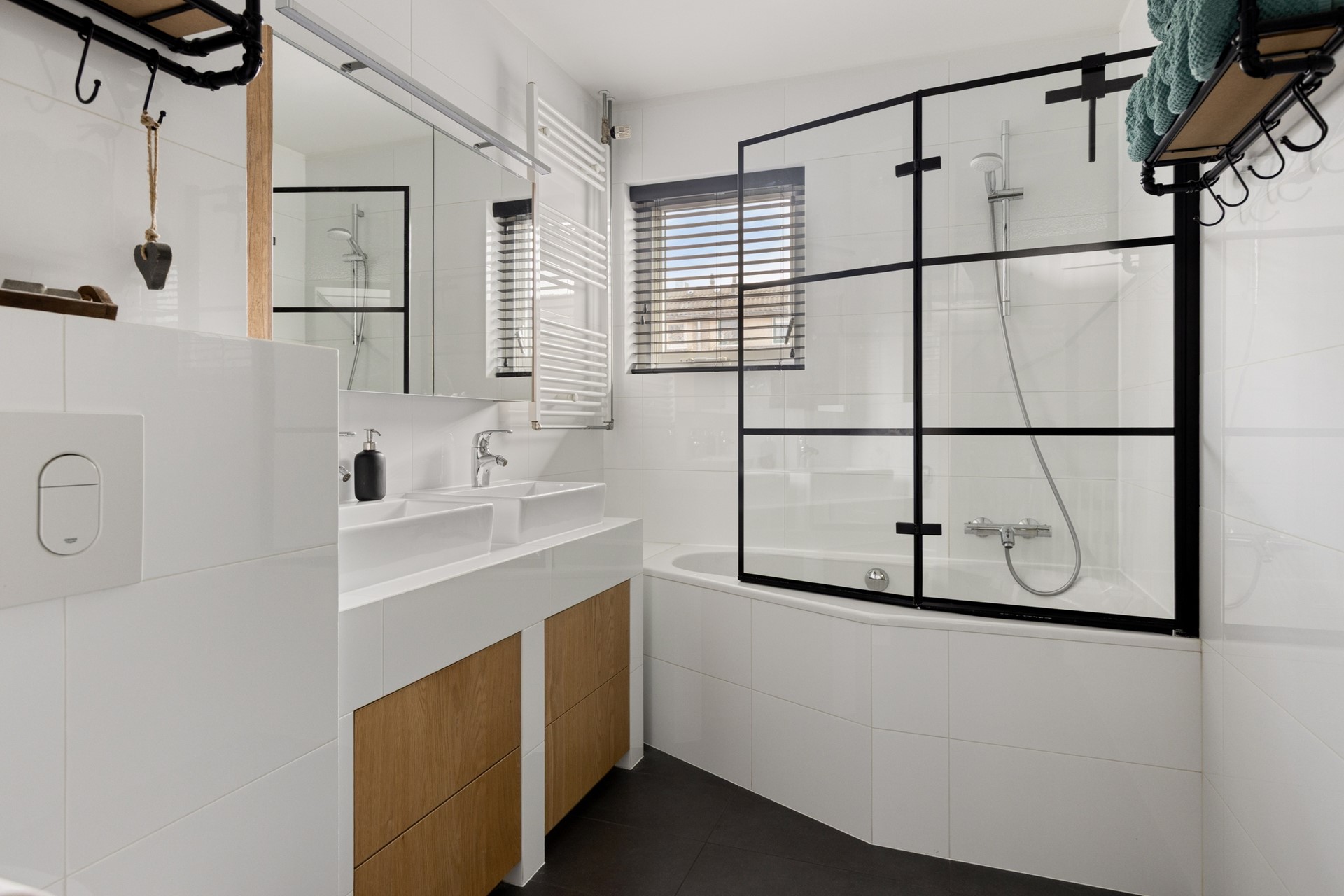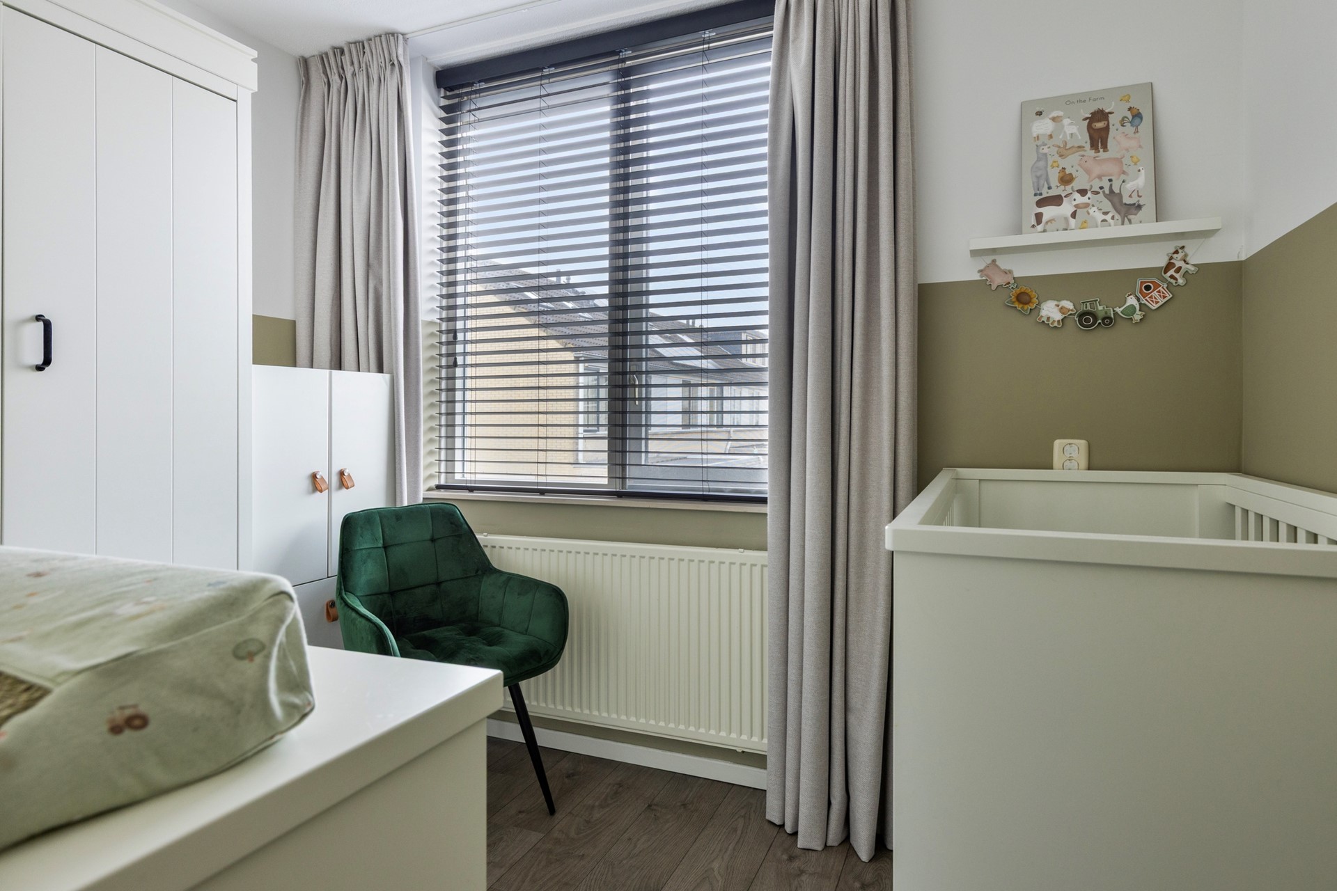 Overloop. Aan de achterzijde van deze leuke eengezinswoning bevinden zich twee slaapkamers Aan de voorzijde van de woning vindt u een slaapkamer voorzien van een elektrisch bedienbaar rolluik. De geheel betegelde badkamer met ligbad/douchecombinatie, dubbele wastafel met meubel, 2e hangend closet, designradiator en een tegelvloer met vloerverwarming maakt het geheel compleet.