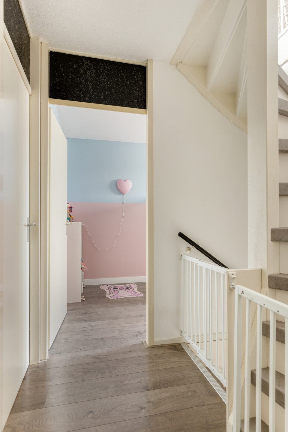 Via de netjes beklede trap bereikt u de 1e verdieping:
