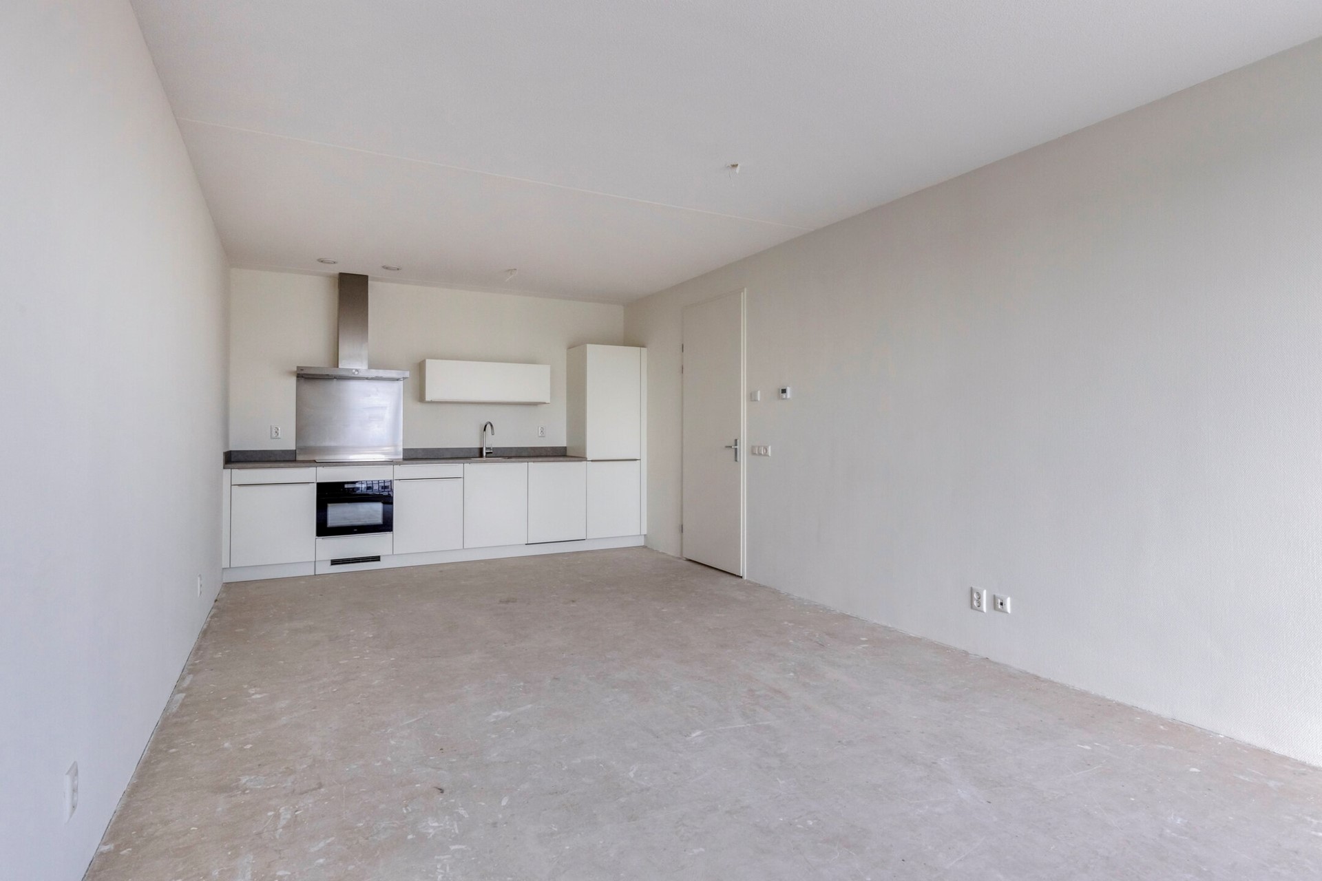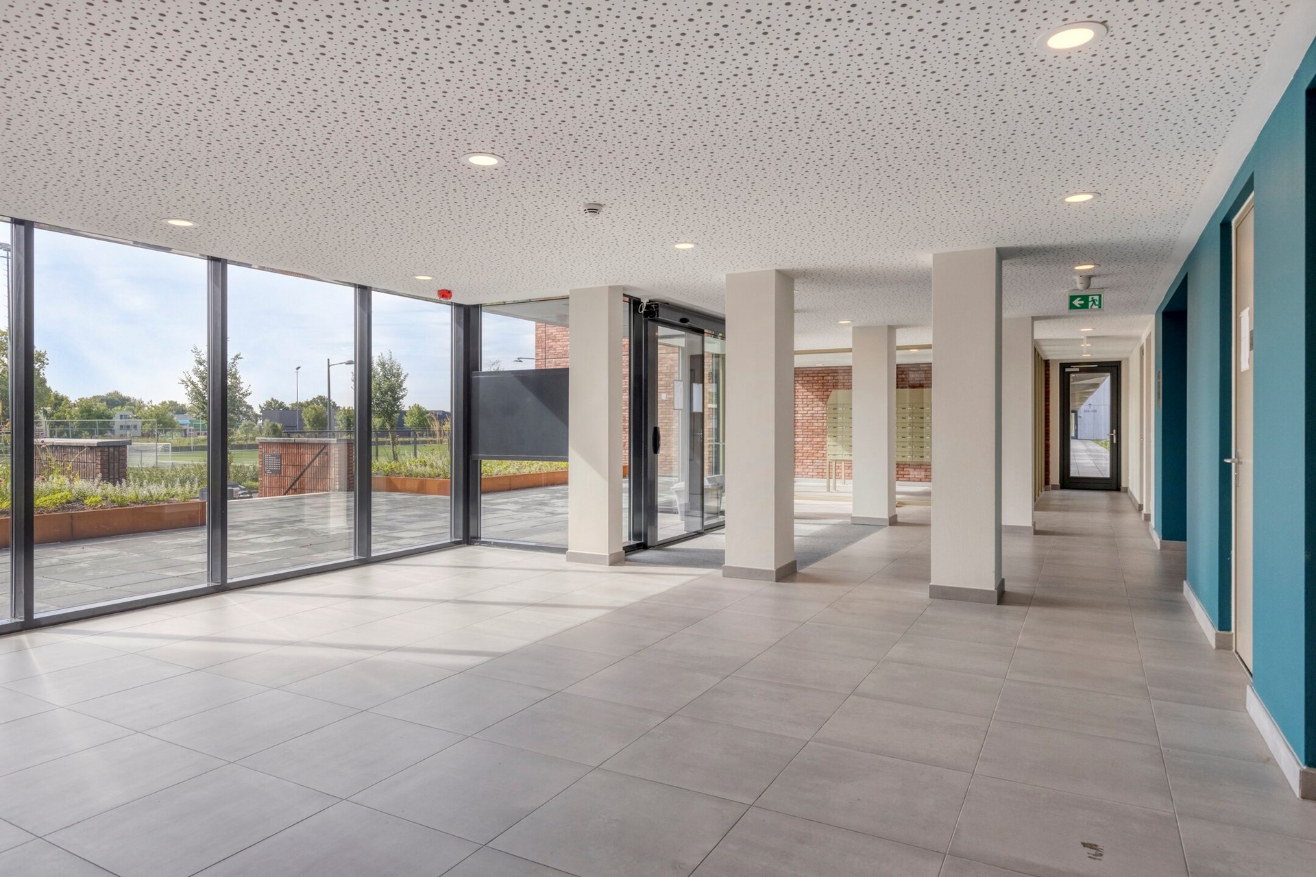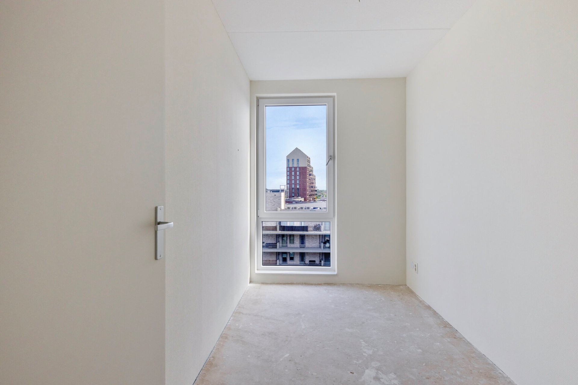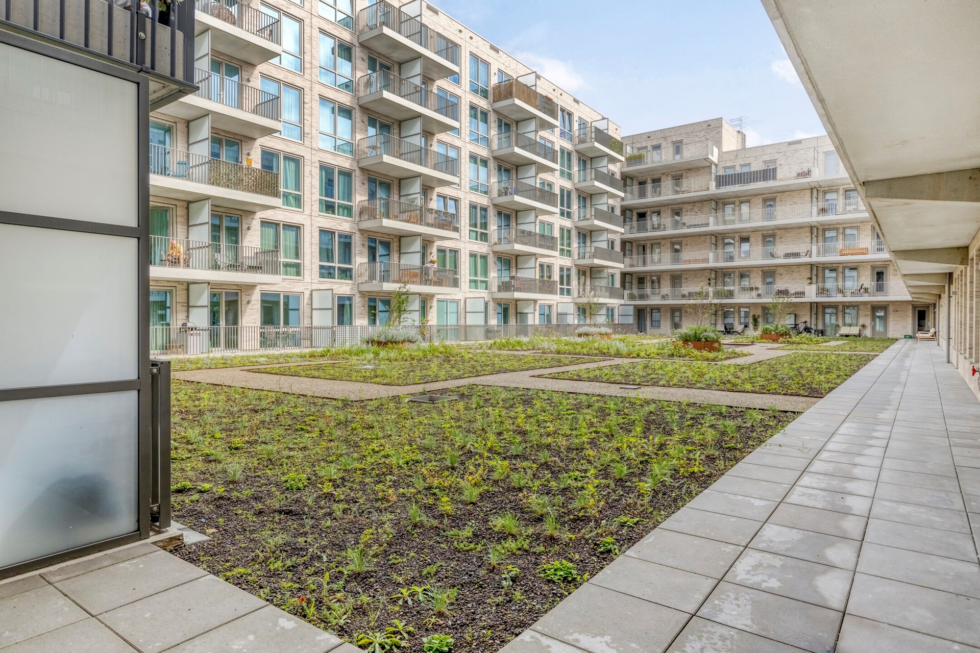 Entree woning. Gang met videofooninstallatie, meterkast en een moderne toiletruimte met hangend closet + fonteintje. Separate (berg)ruimte met warmtepompsysteem (lucht-water), wasmachineaansluiting en de opstelplaats voor de warmte terugwin installatie. De geheel betegelde badkamer is voorzien van een inloopdouche, wastafel en een designradiator (elektrisch). De twee slaapkamers bevinden zich aan de achterzijde van de woning. De verdiepingshoge raampartij van de dubbele openslaande deuren zorgen voor een lichte woonkamer. De moderne open keuken beschikt o.a. over een inductiekookplaat, afzuigkap, combi magnetron, koel/vriescombinatie en een vaatwasser. De wanden zijn netjes afgewerkt. De betonvloer van de gang, woonkamer, keukenruimte en de slaapkamers zijn nog niet afgewerkt. Dé kans om uw eigen wensen te realiseren! Vanuit de woonkamer, beide slaapkamers en het balkon heeft u uitzicht op o.a. de binnentuin.