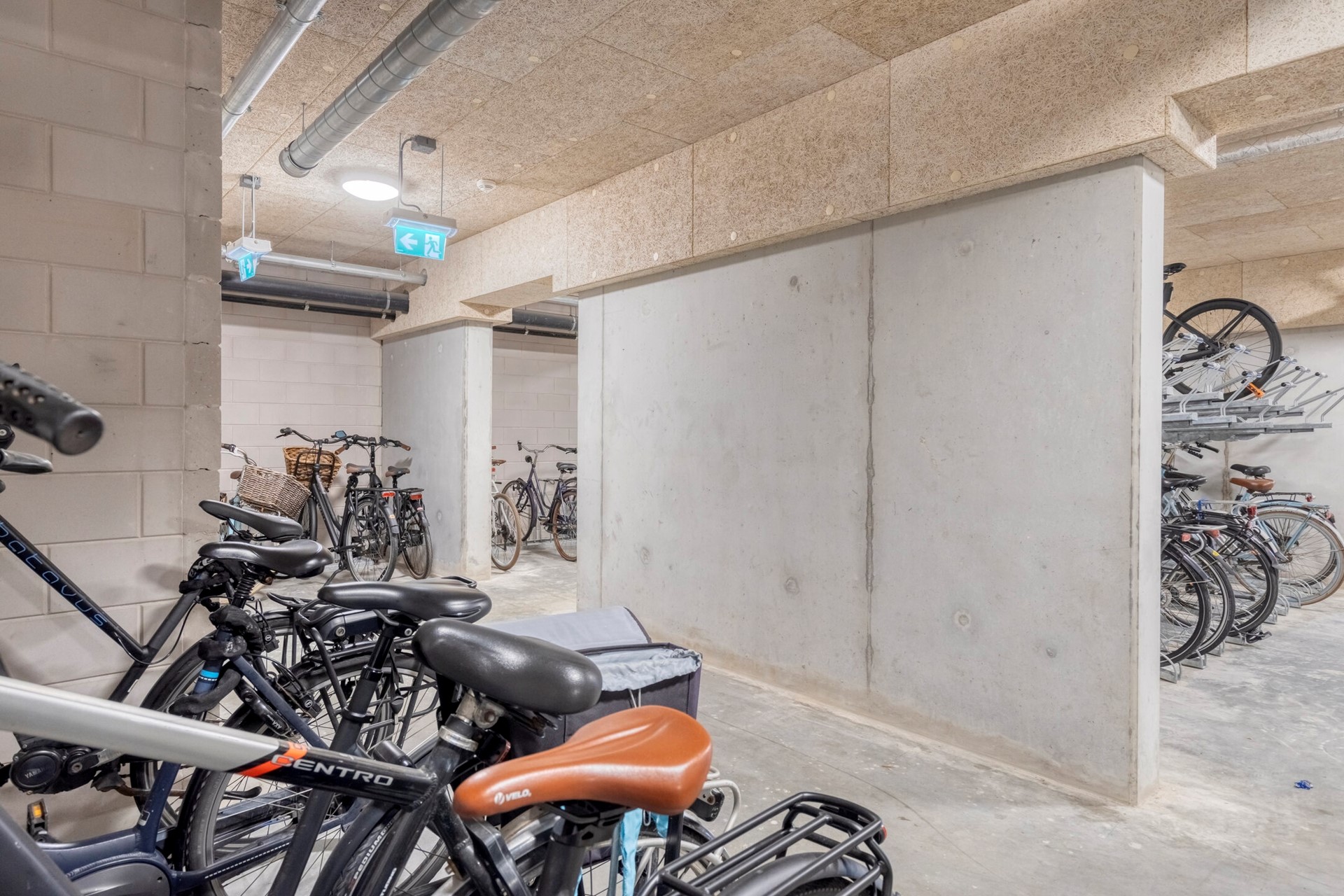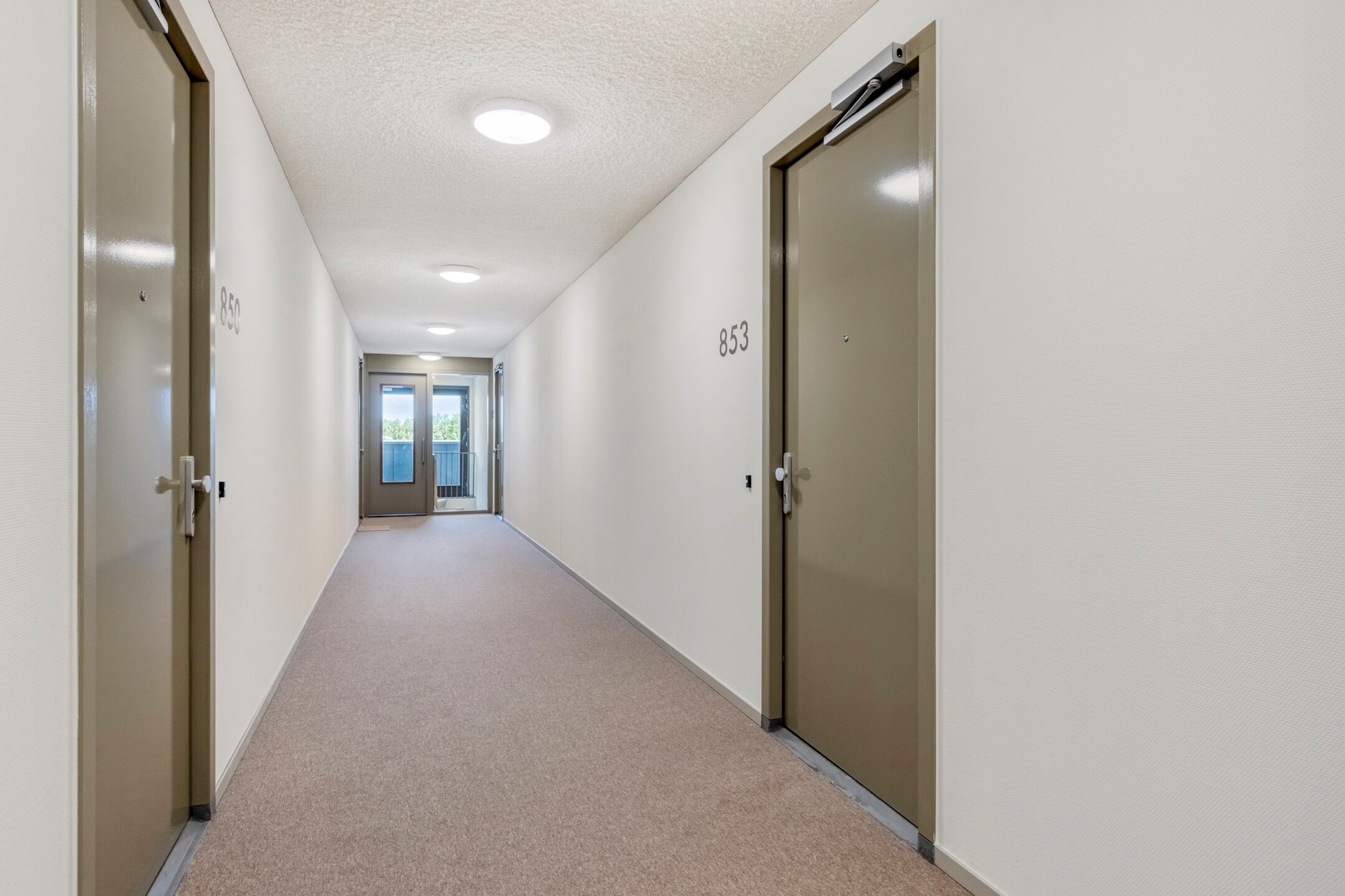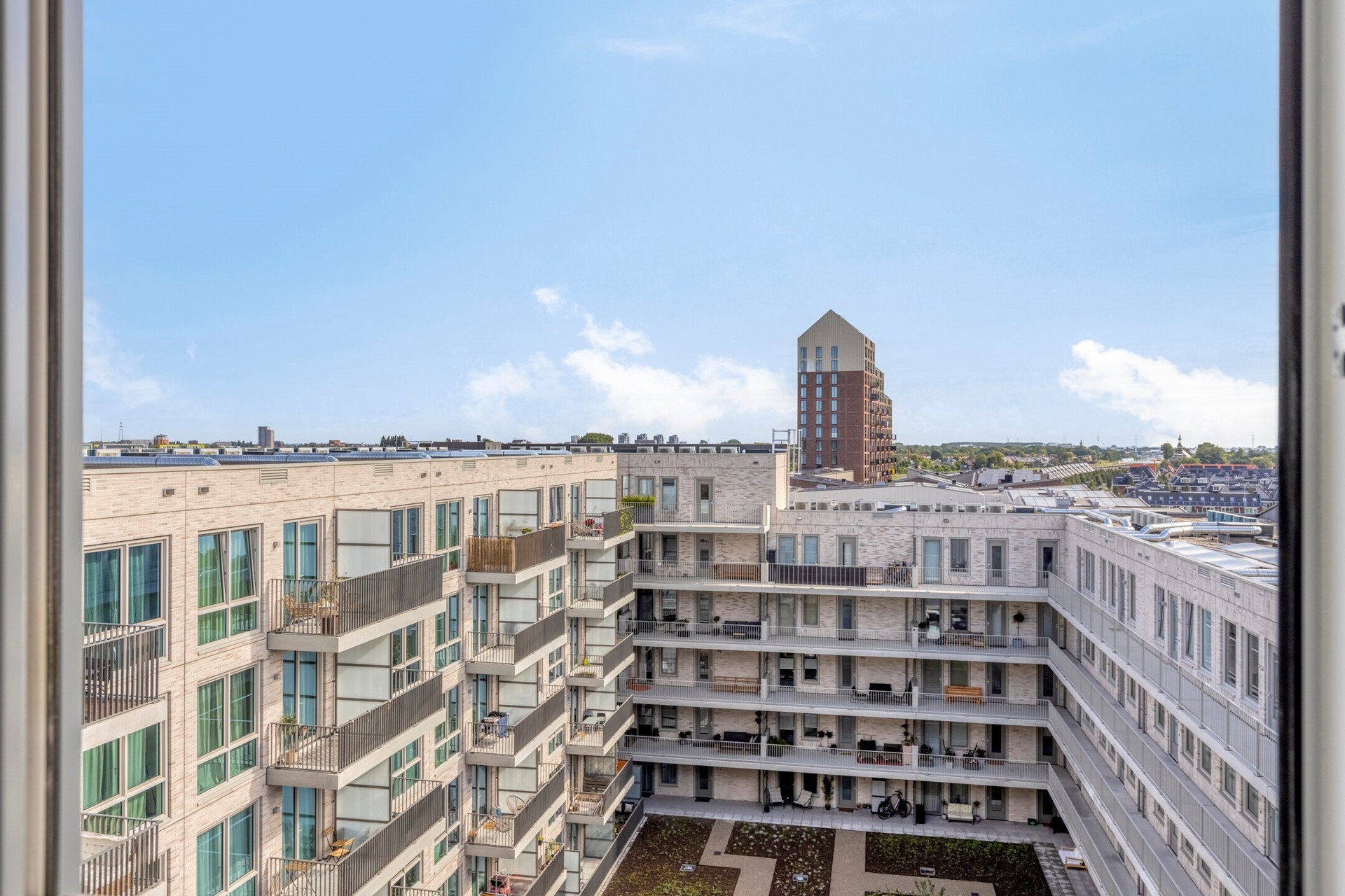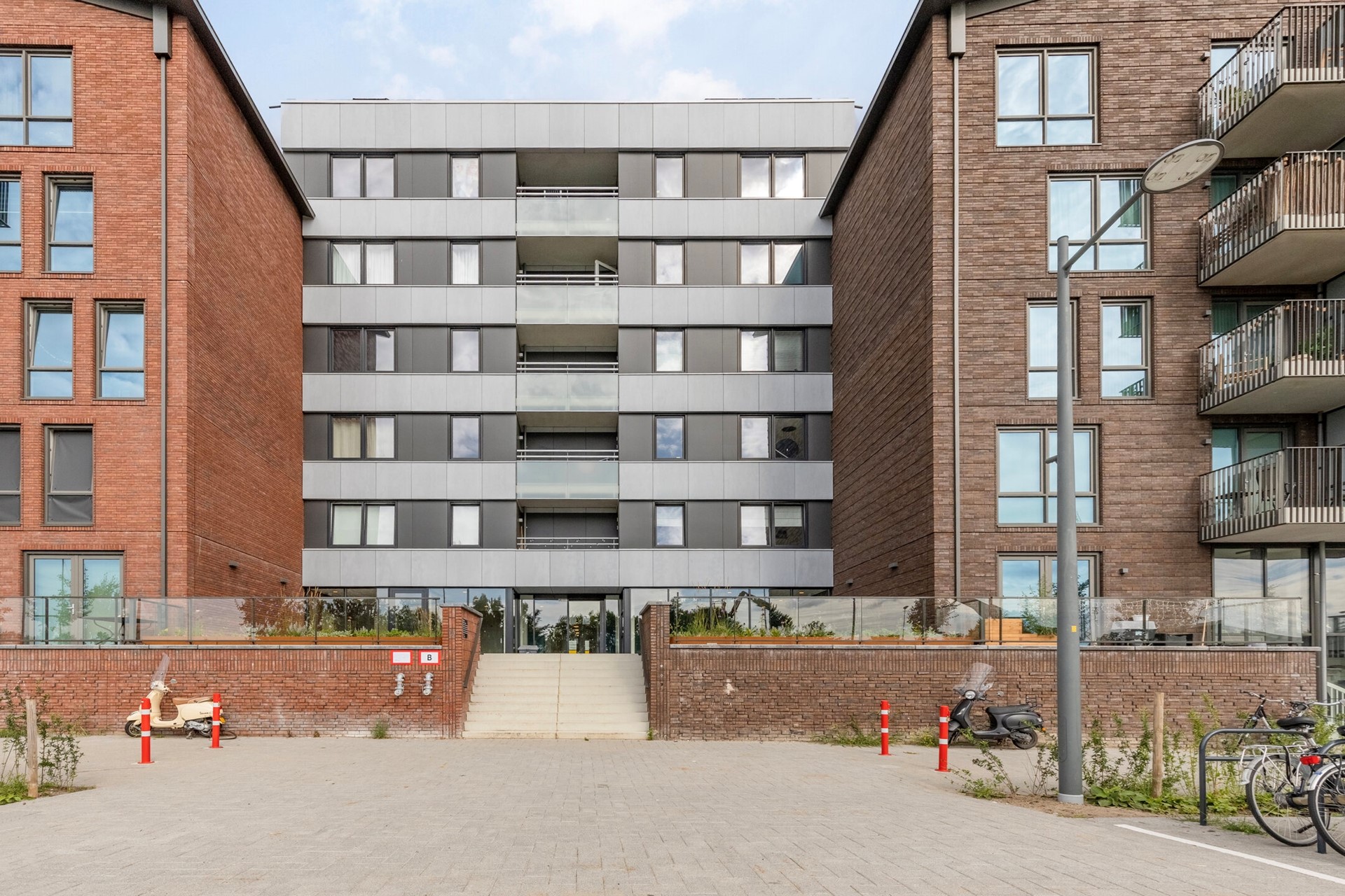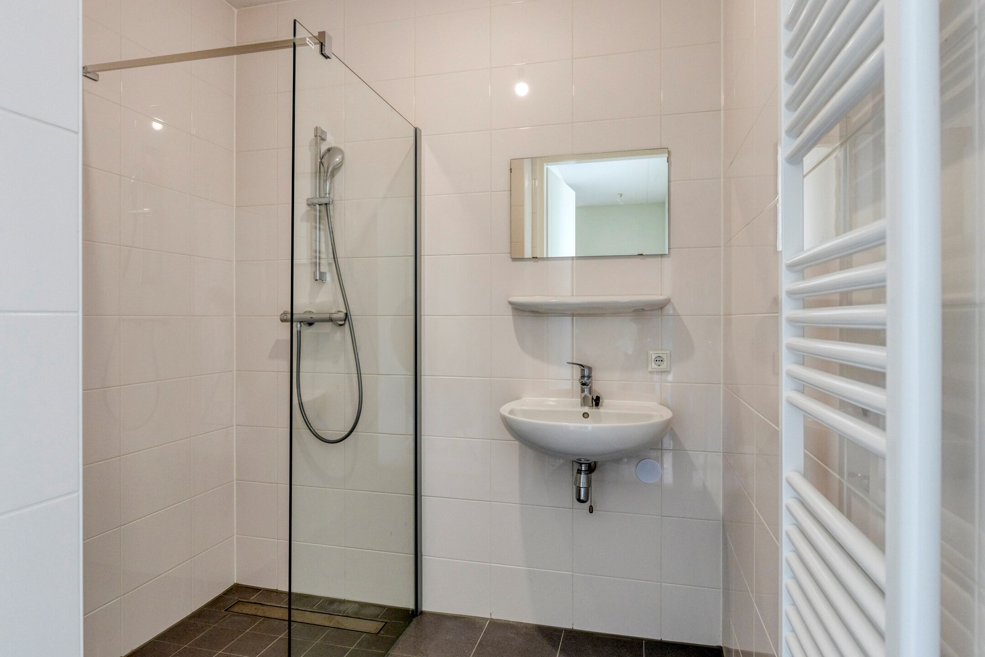 Entree woning. Gang met videofooninstallatie, meterkast en een moderne toiletruimte met hangend closet + fonteintje. Separate (berg)ruimte met warmtepompsysteem (lucht-water), wasmachineaansluiting en de opstelplaats voor de warmte terugwin installatie. De geheel betegelde badkamer is voorzien van een inloopdouche, wastafel en een designradiator (elektrisch). De twee slaapkamers bevinden zich aan de achterzijde van de woning. De verdiepingshoge raampartij van de dubbele openslaande deuren zorgen voor een lichte woonkamer. De moderne open keuken beschikt o.a. over een inductiekookplaat, afzuigkap, combi magnetron, koel/vriescombinatie en een vaatwasser. De wanden zijn netjes afgewerkt. De betonvloer van de gang, woonkamer, keukenruimte en de slaapkamers zijn nog niet afgewerkt. Dé kans om uw eigen wensen te realiseren! Vanuit de woonkamer, beide slaapkamers en het balkon heeft u uitzicht op o.a. de binnentuin.