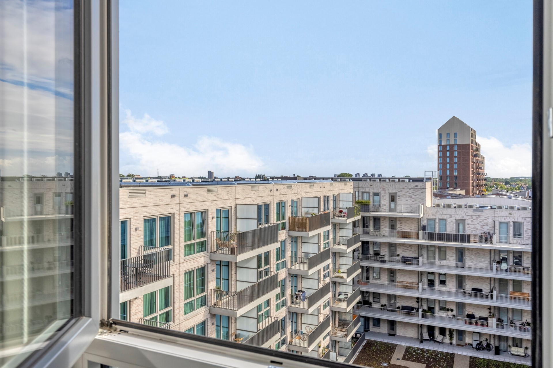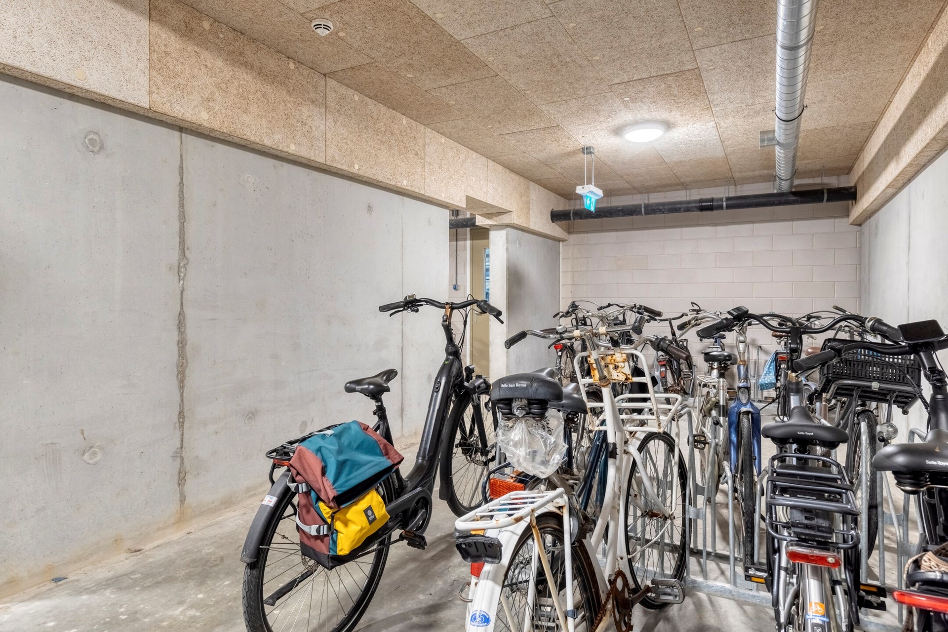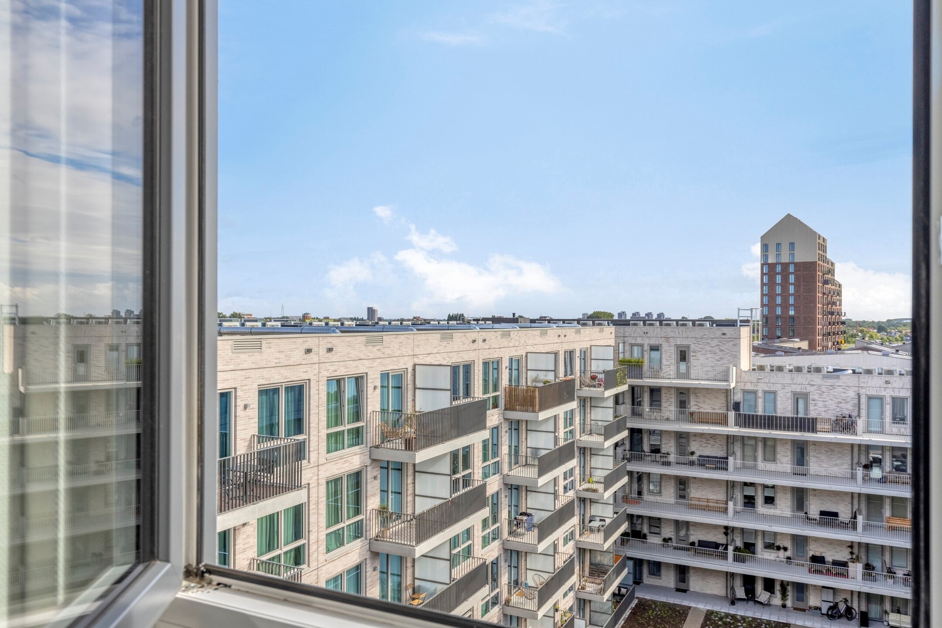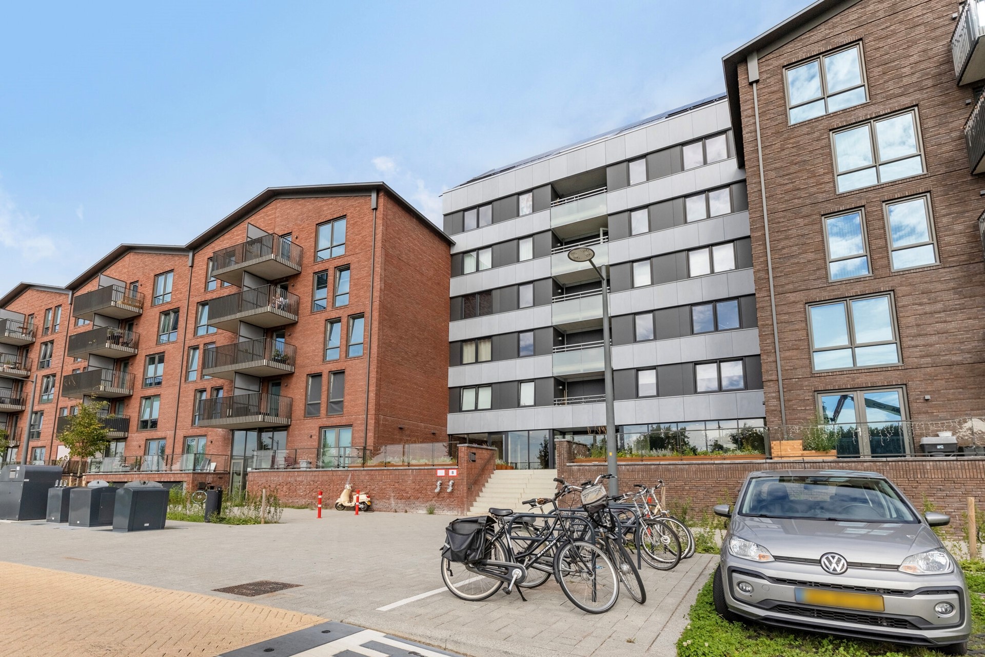 Entree woning. Gang met videofooninstallatie, meterkast en een moderne toiletruimte met hangend closet + fonteintje. Separate (berg)ruimte met warmtepompsysteem (lucht-water), wasmachineaansluiting en de opstelplaats voor de warmte terugwin installatie. De geheel betegelde badkamer is voorzien van een inloopdouche, wastafel en een designradiator (elektrisch). De twee slaapkamers bevinden zich aan de achterzijde van de woning. De verdiepingshoge raampartij van de dubbele openslaande deuren zorgen voor een lichte woonkamer. De moderne open keuken beschikt o.a. over een inductiekookplaat, afzuigkap, combi magnetron, koel/vriescombinatie en een vaatwasser. De wanden zijn netjes afgewerkt. De betonvloer van de gang, woonkamer, keukenruimte en de slaapkamers zijn nog niet afgewerkt. Dé kans om uw eigen wensen te realiseren! Vanuit de woonkamer, beide slaapkamers en het balkon heeft u uitzicht op o.a. de binnentuin.